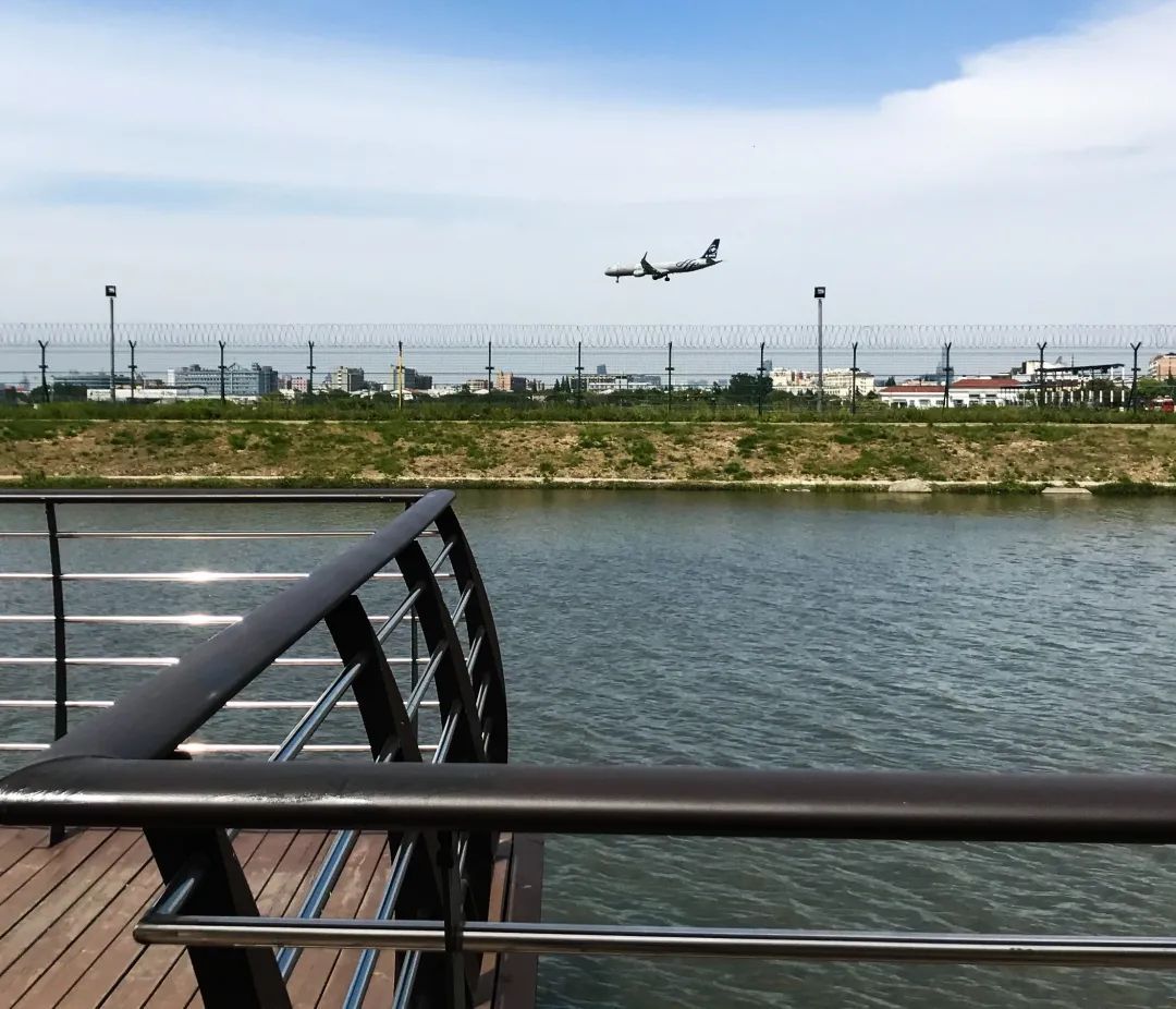 水清岸绿、百花围绕南虹港观机长廊成为观看飞机起降的最佳视角……