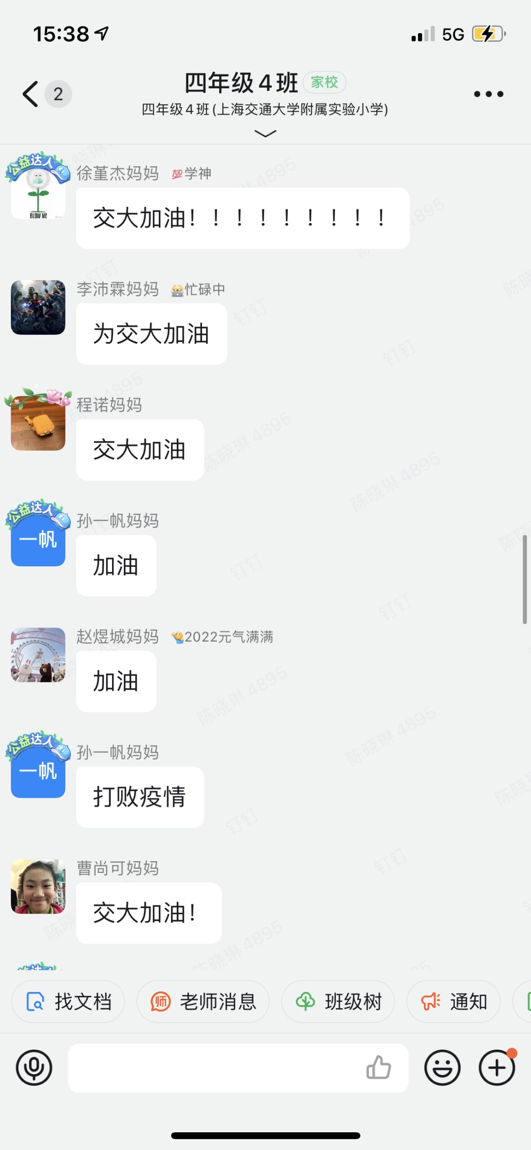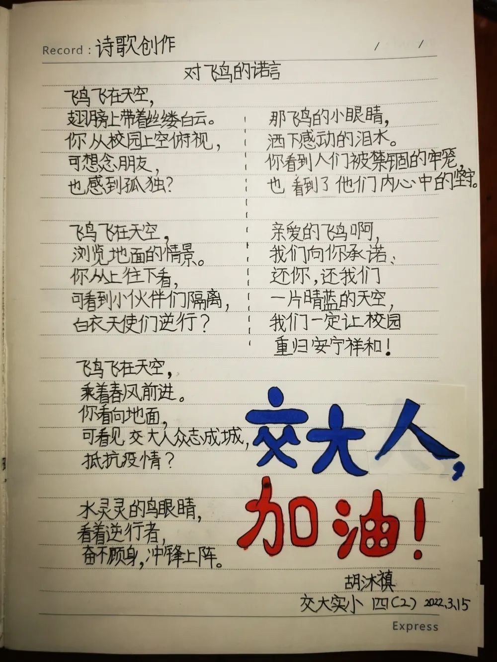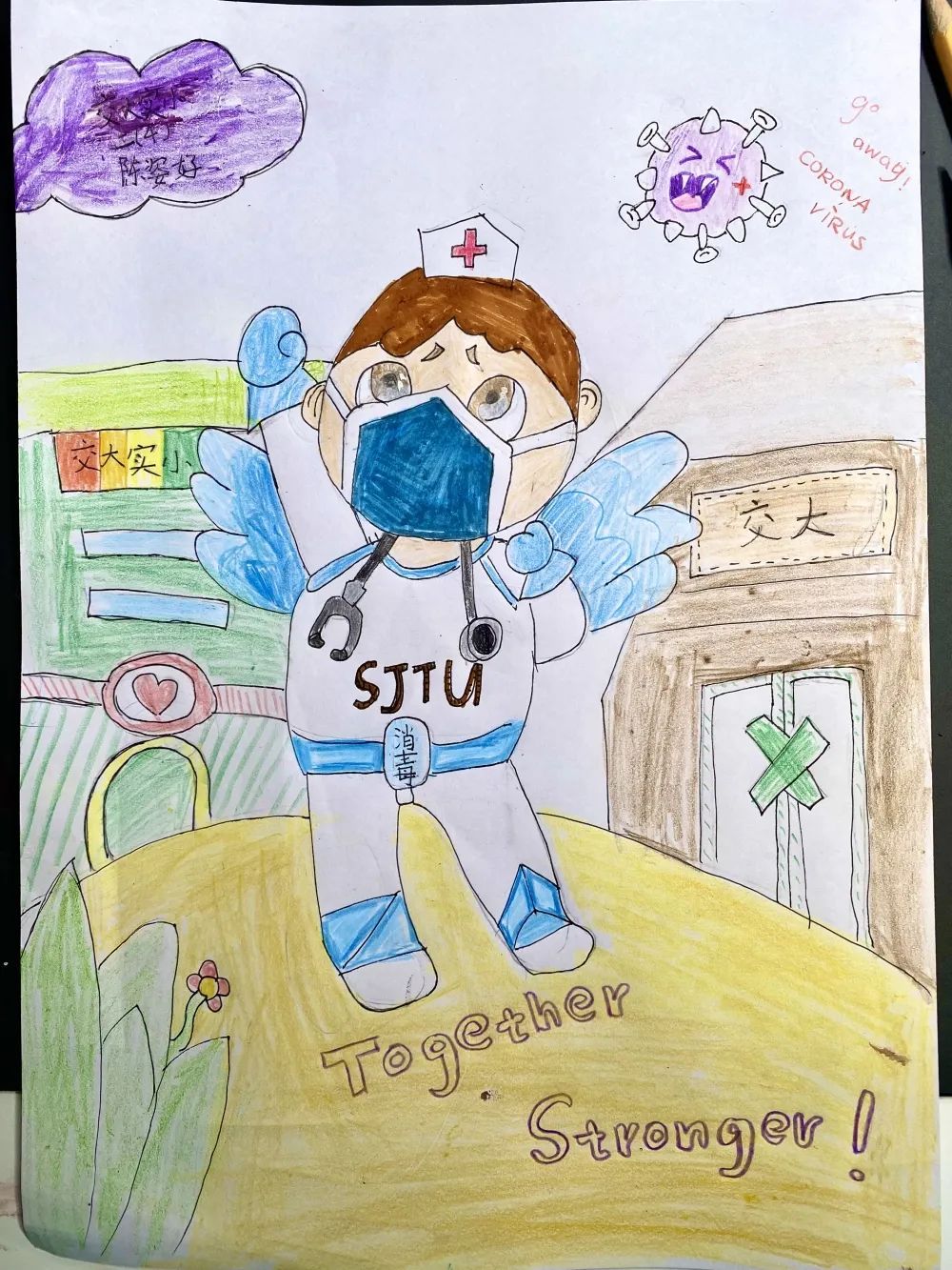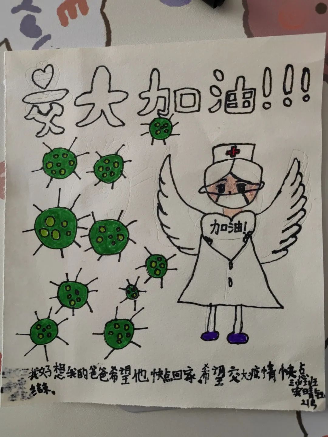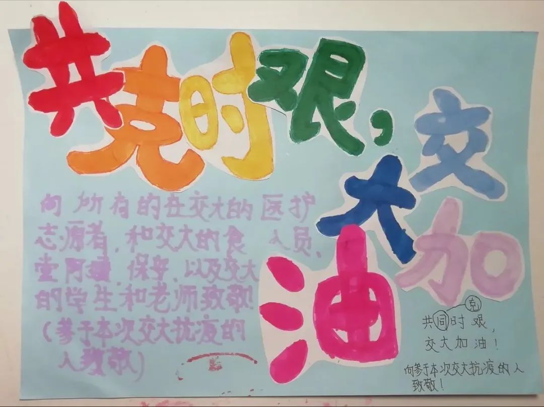 交通大学的老师们、教授们以及奋战在交大抗疫一线的所有人,我为您们加油,我身为一名交大实小的一员感到自豪和感动,正是因为无数像您们这样默默奉献的人,我们国家的疫情才能慢慢地往好的方向发展,迎来鲜花盛开的春天!