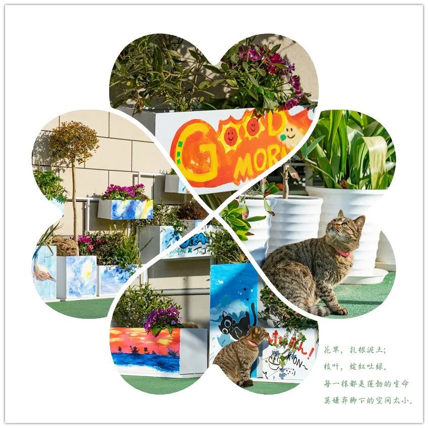 你们都去哪儿啦?再不回来,这个花坛就被我承包了。——来自敬业中学的一只狸花猫