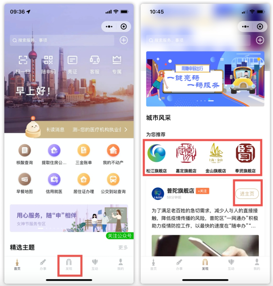 用户通过“随申办”微信小程序、“随申办”APP、“随申办”支付宝小程序,进入“发现”频道动态进入该区旗舰店主页,选择“居家健康监测证明开具”服务,点击便可使用。