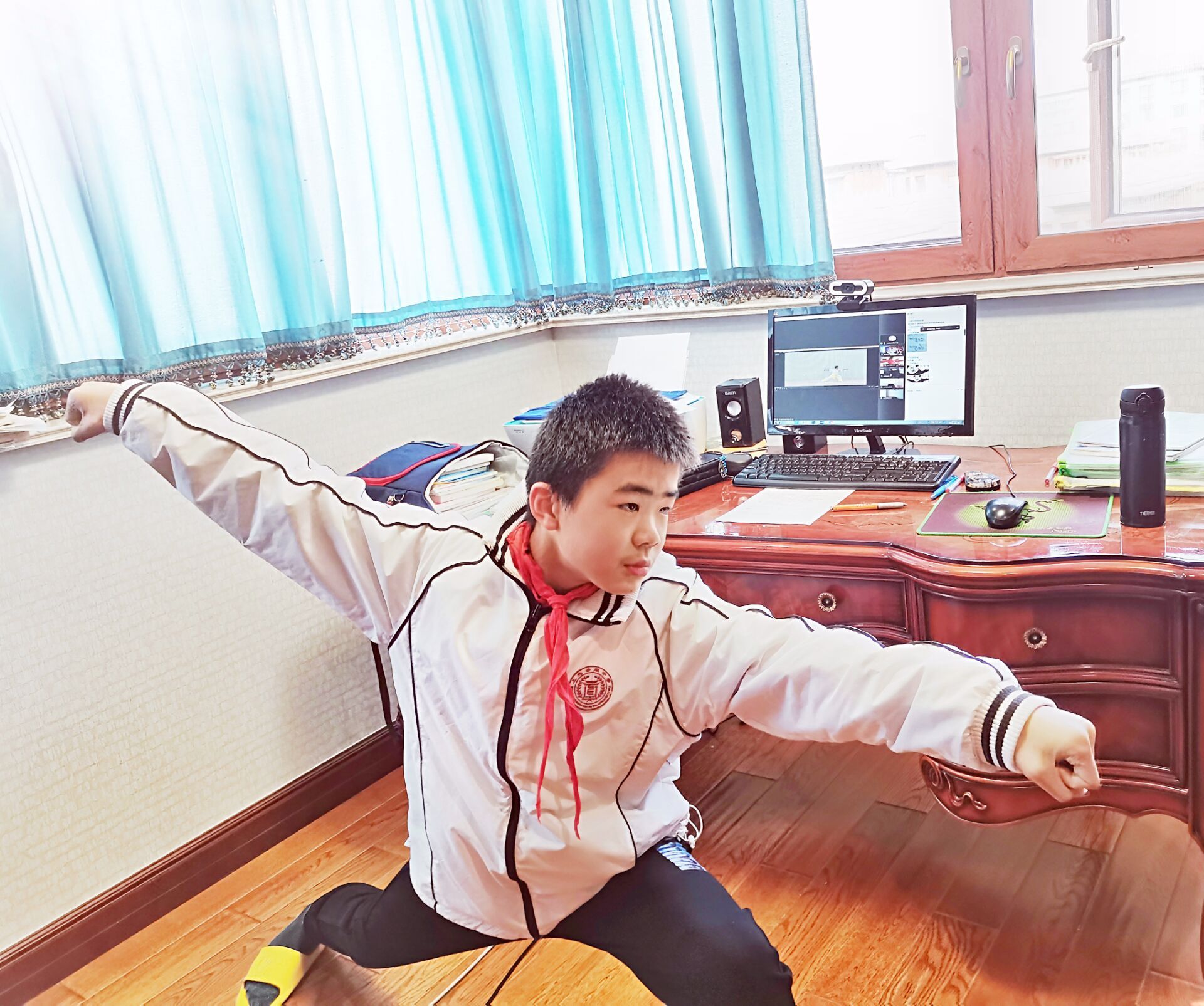 “上网课也有不少好处。”上外云间中学六(6)班学生朱英杰也说,比起线下学习,线上学习可以通过视频进行回放,能更清晰地学习老师所教的每一个动作。这一周,他学会了《少年连环拳》。每日网课结束,他还会抽出一小时在自家院子里跳跳绳。