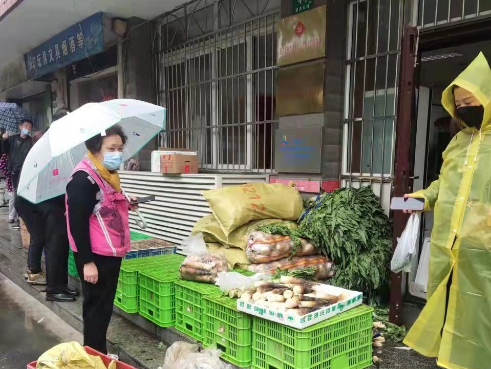 “我要两斤蚕豆。”“帮我拿几个番茄,再来两根莴笋……”前来买菜的居民络绎不绝,大家都对临时“菜市场”很满意,“现在能有这样一次买菜机会实属不易,菜品很新鲜,价格也便宜,真的是非常感谢。”
