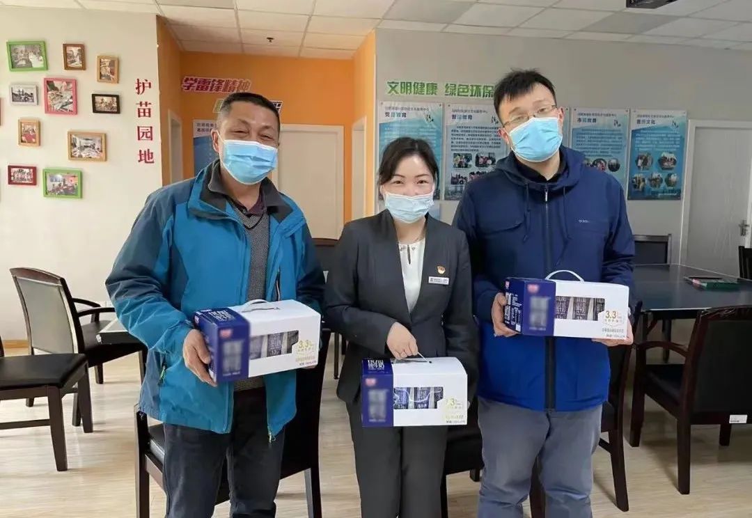 ▲ 徐汇支行为坚守防疫一线的社区工作者送去防疫物资和牛奶等物品,与社区街道携手攻克难关。