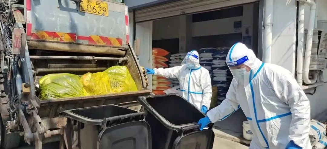 针对高层封控小区,清运部门及时与属地居委商定收运方案,引导居民自行把垃圾放至门外,定时间上门收集,由社区志愿者和环卫保洁员逐一消杀后收集,提高了收运效率,也避免了病毒交叉传播。