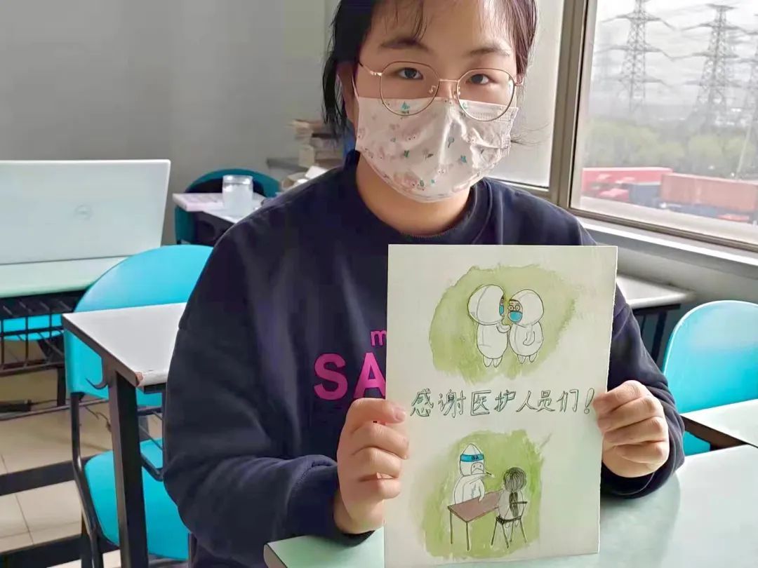 在这个时期,上外适时开展“感恩教育”,学子们为了表达心中感激,将鲜花、掌声与画作赠与“大白”,并在朋友圈记录学校疫情防控的积极行动和感动瞬间.....他们有的搬出水彩颜料,在桌灯下绘制一幅特别画卷,有的将手中的鲜花赠与辛劳奔忙的医护人员,有的用心致谢,用掌声送别着他们。