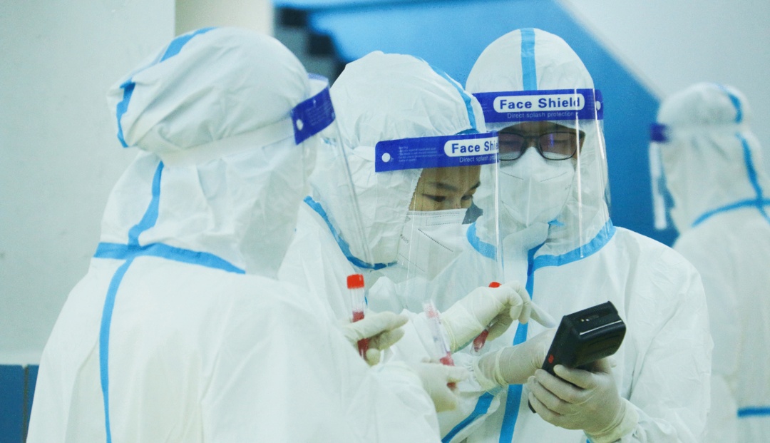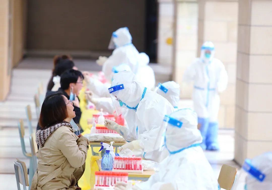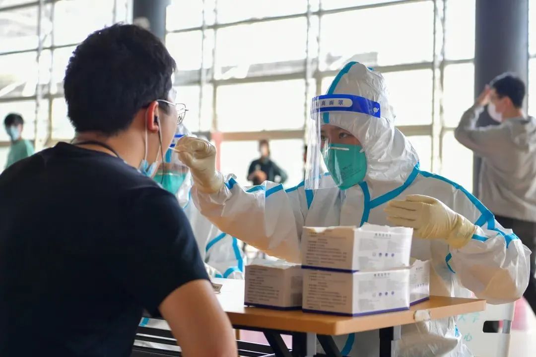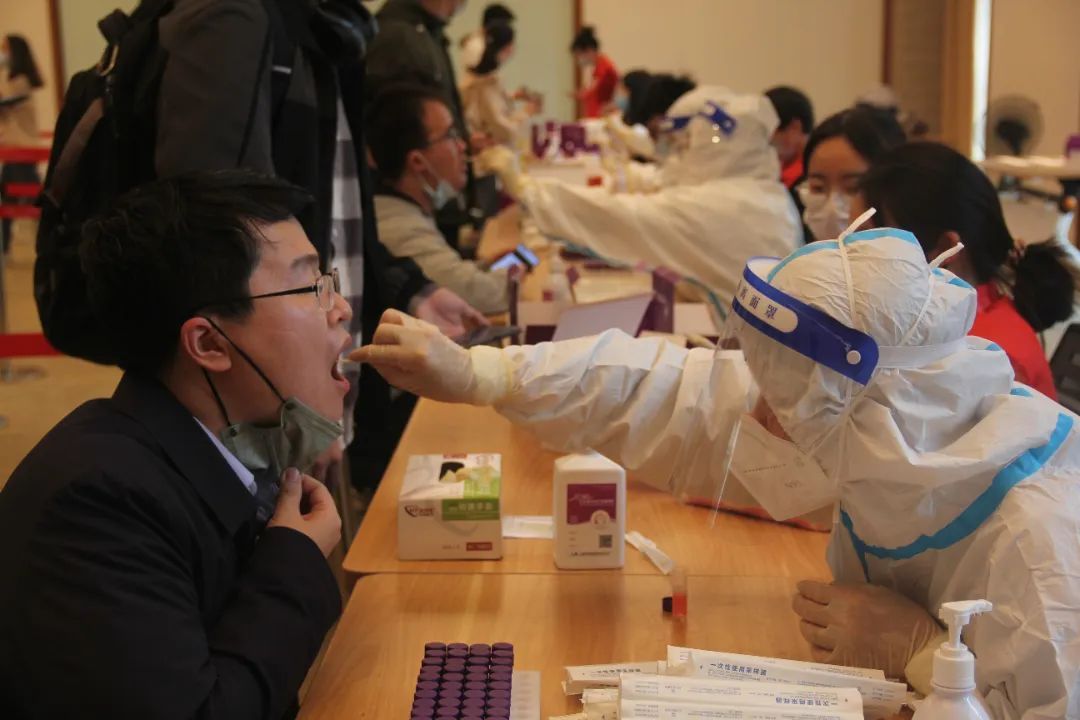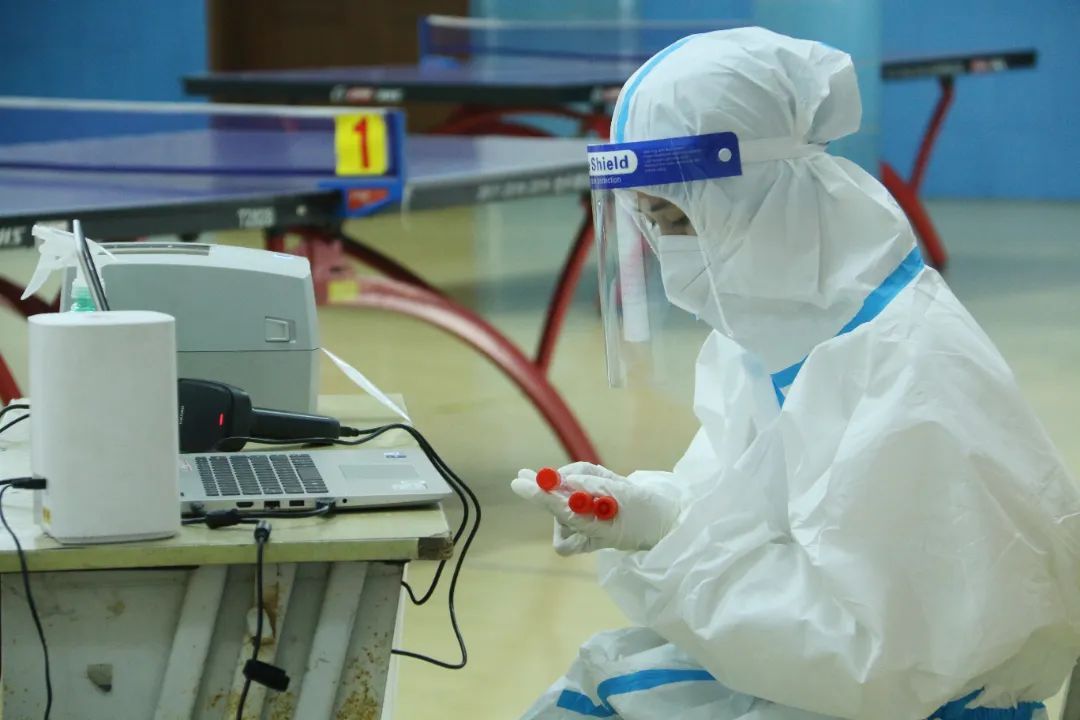 核酸检测点前大摆长龙,你们手上的动作迅速而又耐心。