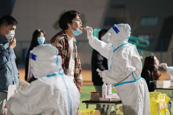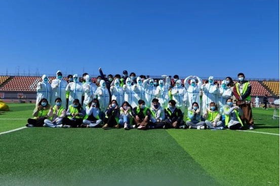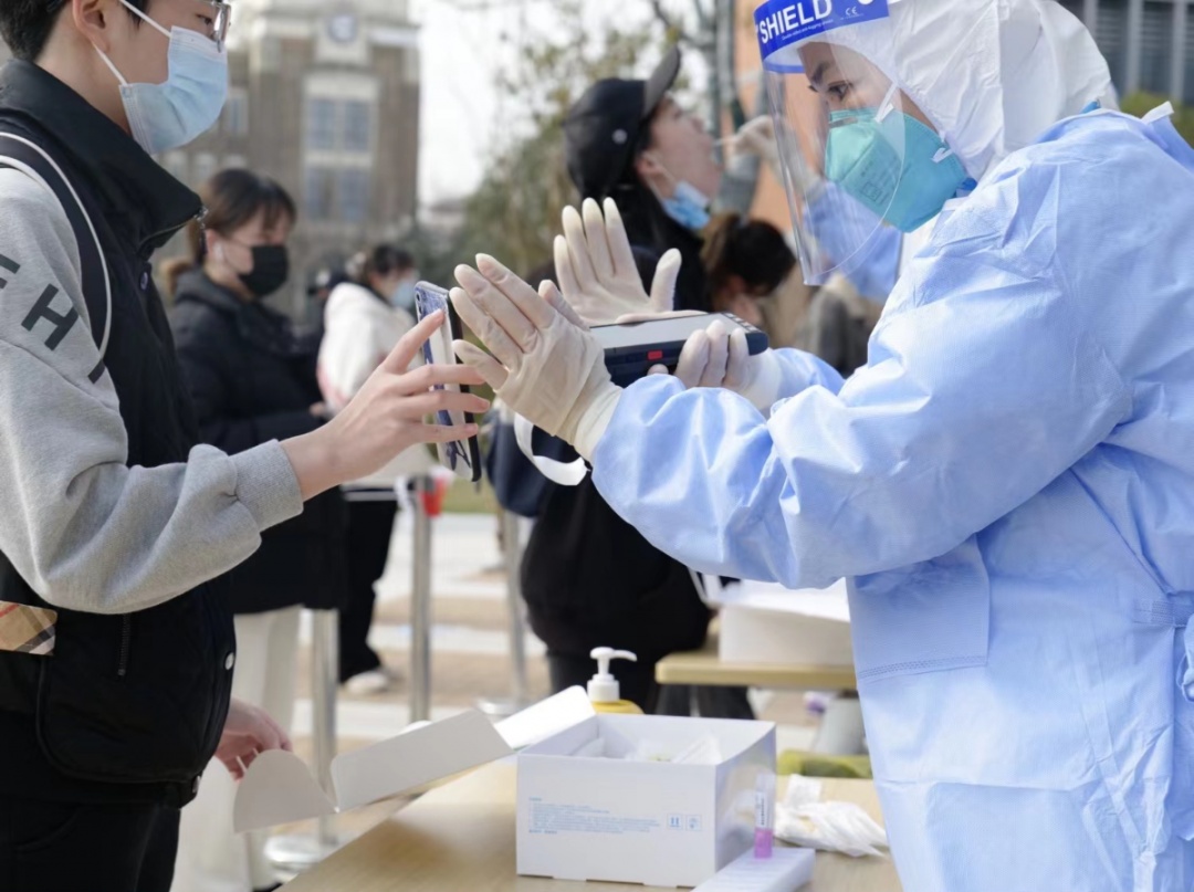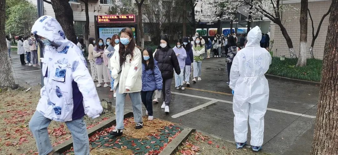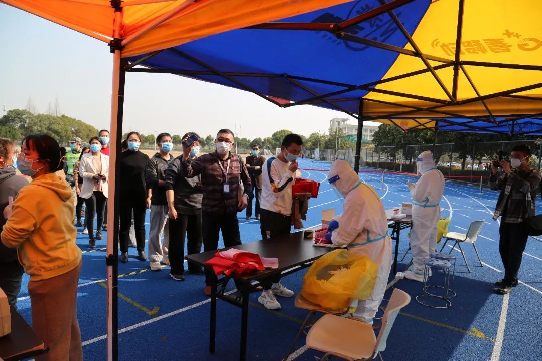 一场无声的接力,背后是众多岗位上无数人的不眠不休。为了让检测顺利进行,学校志愿者也在行动,“大白”们提前到达现场接受培训,在医务人员专业指导下学习如何穿戴防护服,为采集核酸的医务工作者准备好采样所需物品,帮助扫描“健康云”系统上的核酸检测二维码并打印,同时耐心提醒排队的同学们提前准备好二维码并保持安全距离……为保证应检尽检的志愿服务工作贡献自己的一份力量。