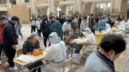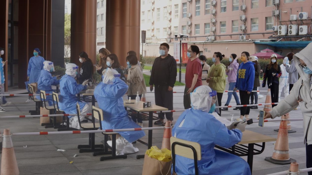 “9号楼!是9号楼!去17号楼后面做核酸吧,姐妹们!”