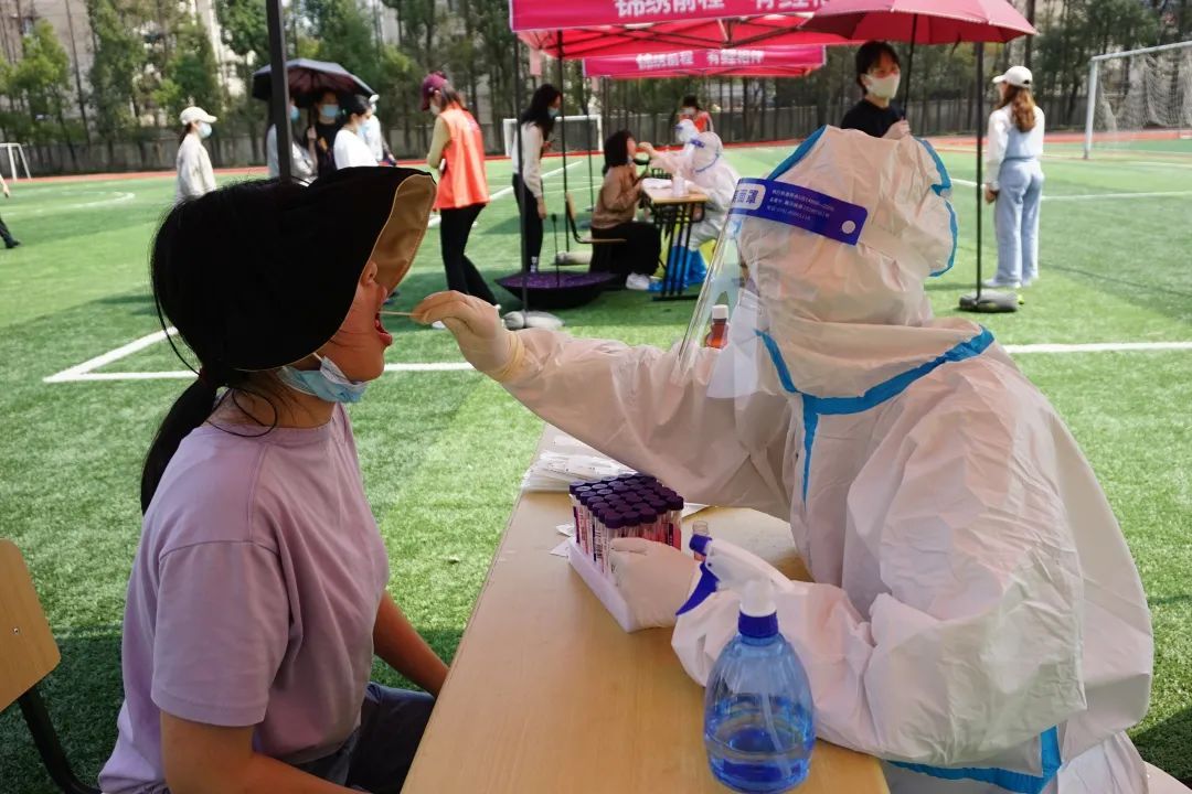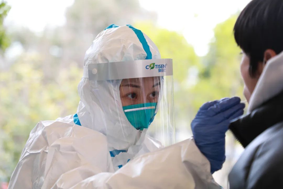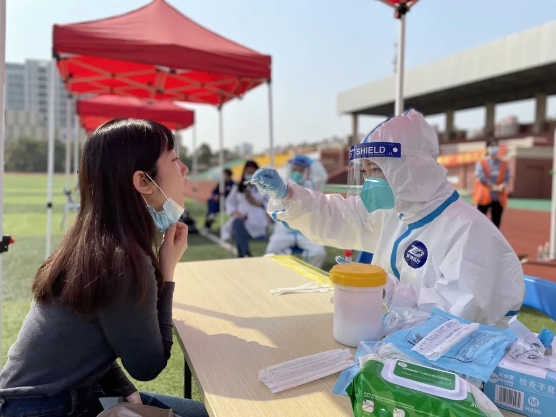 他们亲切的言语让学生紧绷的身体状态放松下来,“快准稳”的动作减轻了检测过中的不适,5秒钟就顺利完成了登记和采样。密不透气的防护服和雾气朦胧的防护面罩下,他们冒汗的额头上是清晰可见的口罩勒痕。闻令而动、向“疫”而行,暖心的“大白”夜以继日、冲锋在前、全力以赴,他们以实际行动践行着,初心和使命,责任和担当,感谢“大白”们在疫情中为我们奔赴前行。