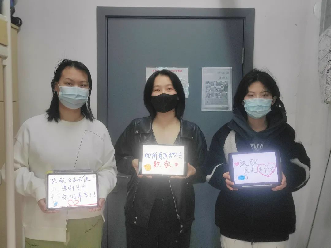 每一处核酸采样点,都能见到“大白”无私奉献的身影,在此,我们想对坚守抗疫一线的“大白”表达由衷的感谢:虽然我们无法看清你们的面容,但我们能感受到你们的英勇无畏和真情,你们是最美的逆行人!感谢你们的挺身而出、不辞辛劳,是你们的默默付出,为我们筑起了坚实的防疫屏障!作为未来的医务工作者,此刻的我们感激你们,更敬佩你们!你们的身影如同定心丸的存在,不断告诉我们:一切都会好起来的!