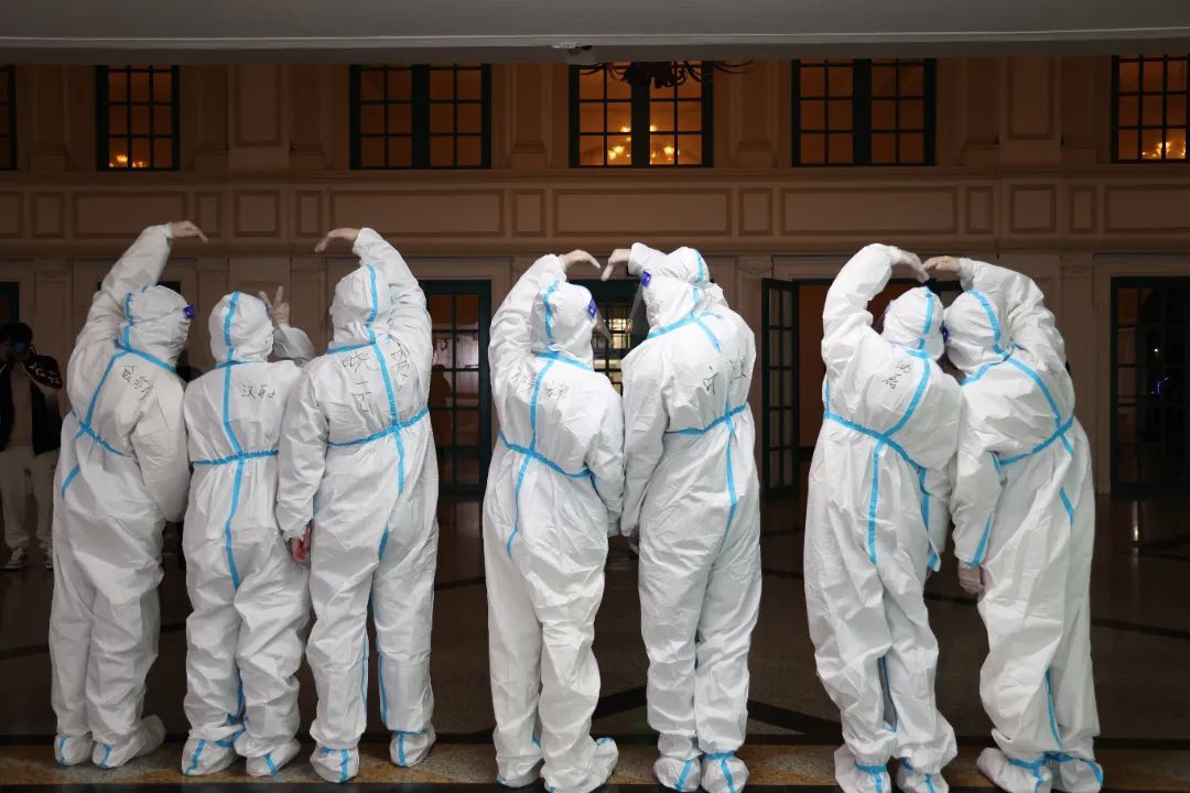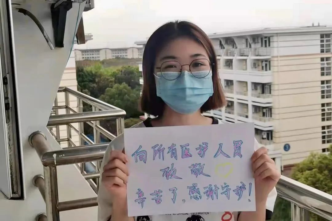 谢谢!无尽的感激,是你们给了我们战疫的勇气。世上从来没有天降英雄,只有逆风前行的凡人,是你们披上‘白色战袍’,守护家园,扛起希望。‘大白’穿着密不透风的防护服,在骄阳下浸透汗水,在风雨中裹上泥泞。从白天到深夜,你们都在一线奋战。在疫情期间,日复一日的重复性动作,单日就可达三万次。无数‘大白’离家多日,难得休息,再次回到校园却是因为疫情。有些‘大白’说想吃学校的麻辣烫了,愿春暖花开之时,我们再度相约,共赏美景,齐品美食。