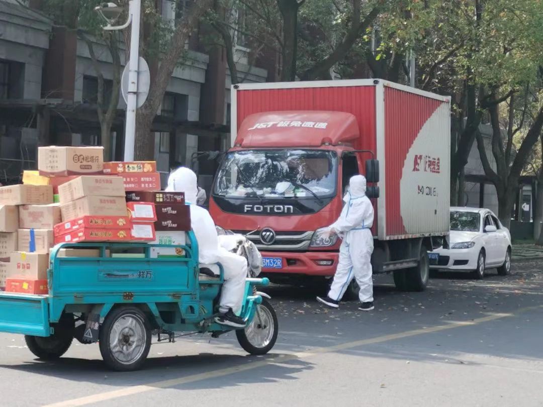 “大白”们忙碌的身影,不仅为师生带来了生活必需品,更以乐观抗击疫情、积极为人服务的精神给大家带来了温暖与信心。