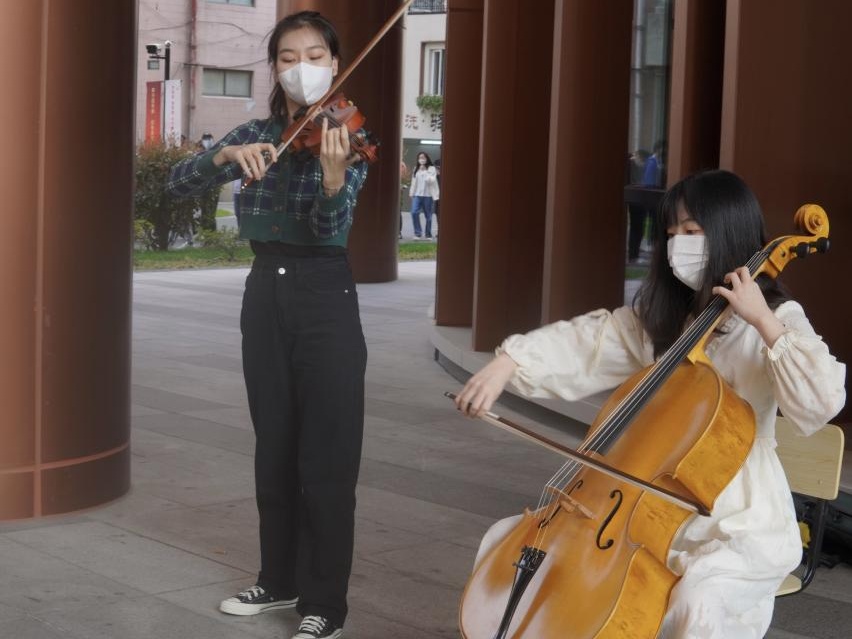 上海音乐学院团学骨干艺术团及学生志愿者也在这个特殊时期结合专业特长,用音乐为全校师生员工献上温暖,向“大白”表最诚挚的谢意。