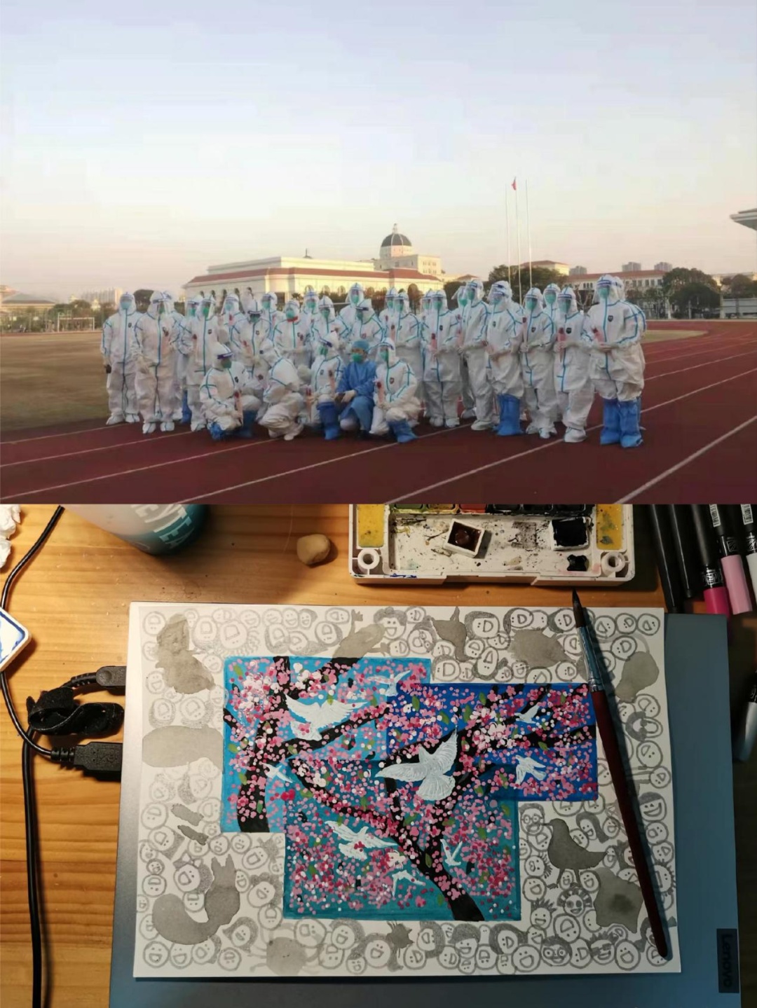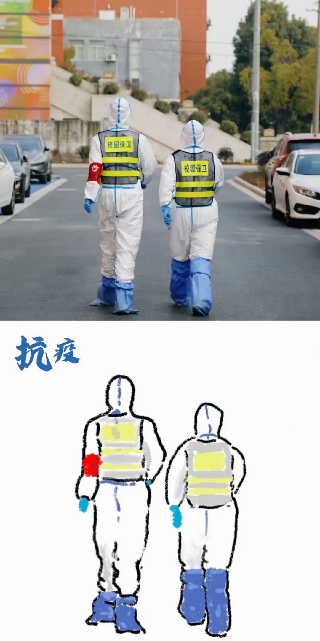 “大白”,你们是我们最熟悉的陌生人,疫情当前,你们冲锋在先,帮助我们守护校园。春光明媚,多希望千帆过尽后,能看看你们褪去防护服,享受好春光。我们想对你们说声由衷的感谢,因为你们值得所有上体人的那一份谢意。