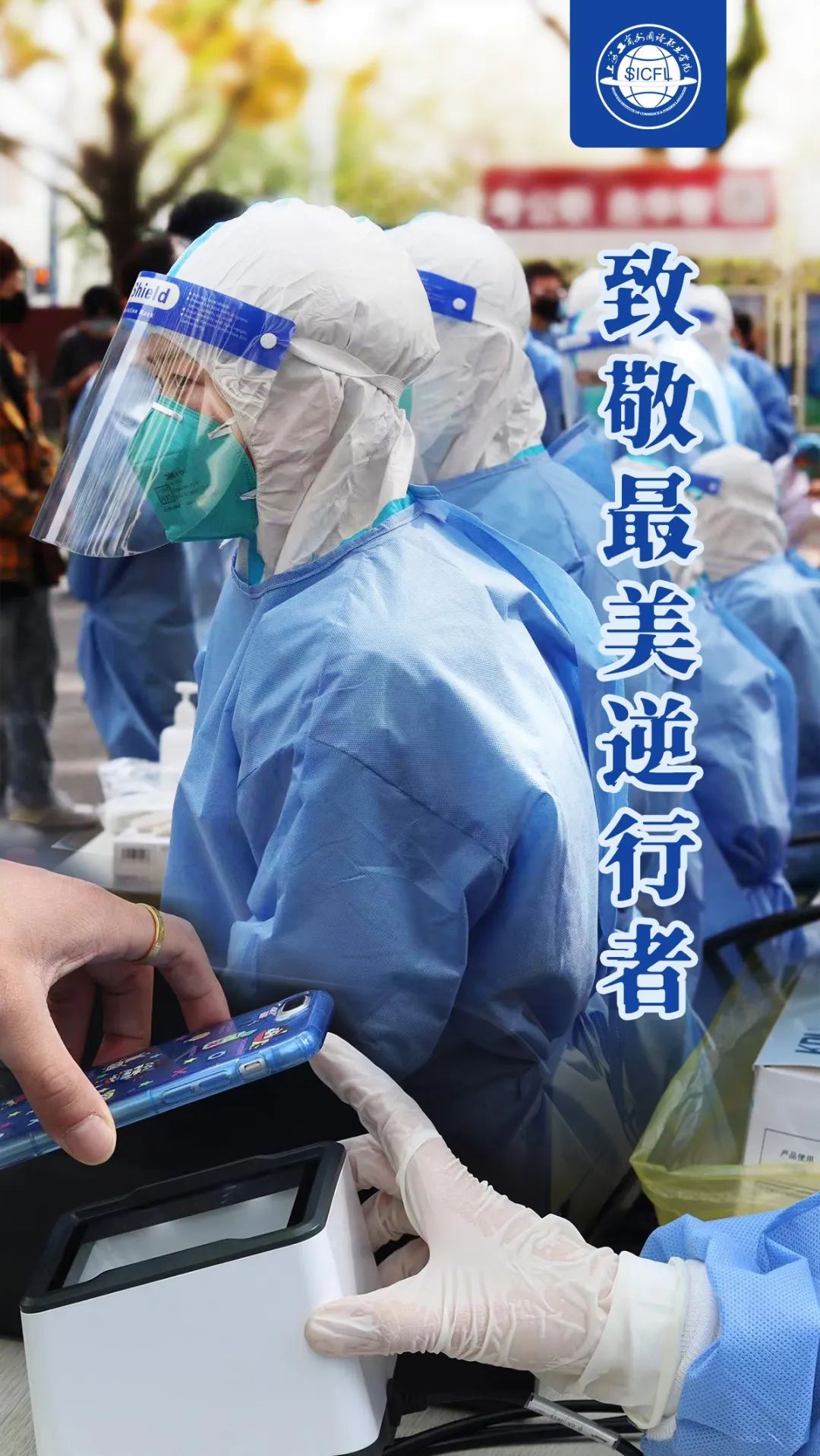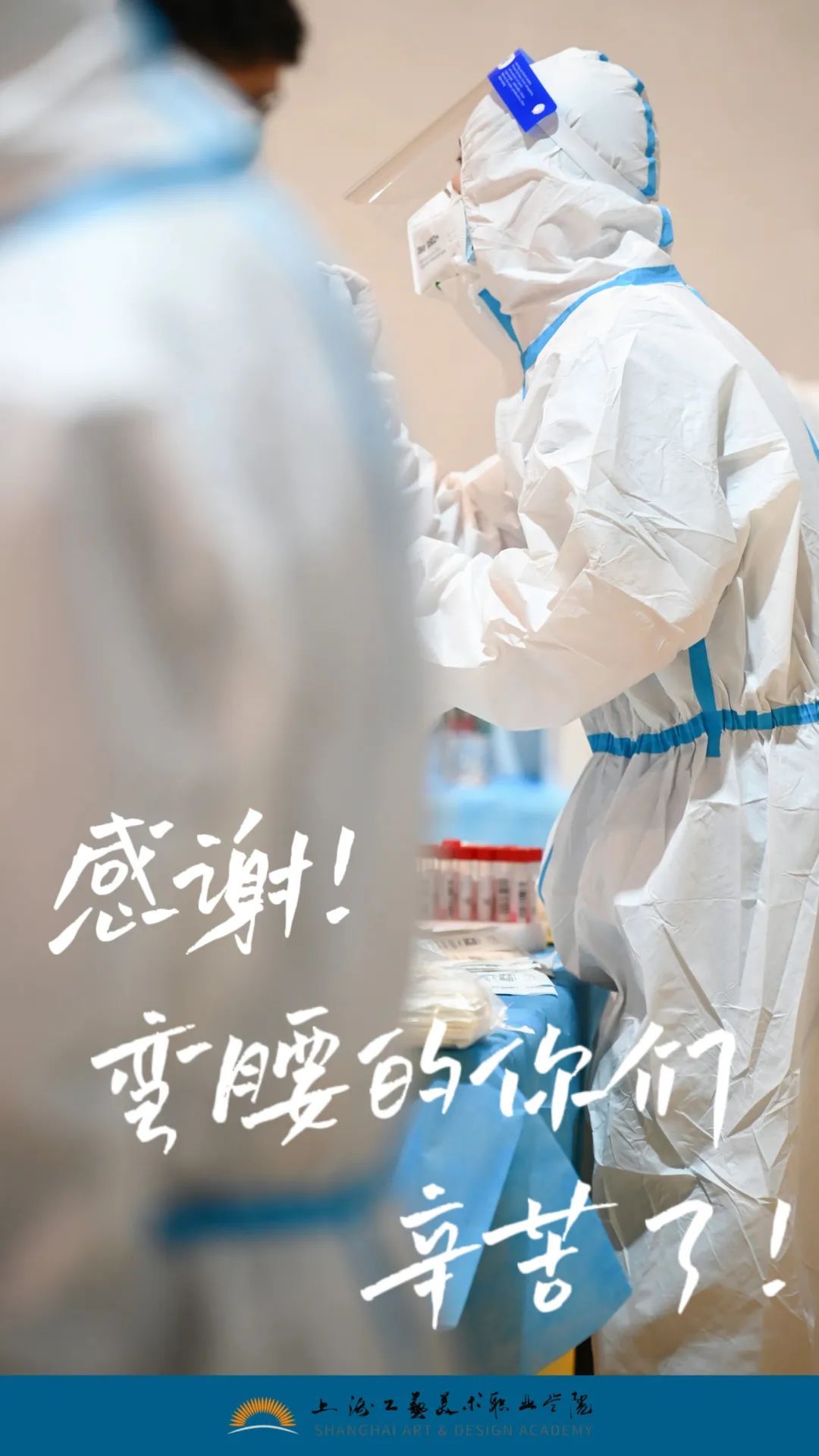 近日,上海工艺美院顺利完成了全体师生员工、第三方后勤人员的三轮核酸检测任务,一轮轮核酸检测的顺利推进,离不开每一位前来排队检测的同学们的全程理解,离不开工作人员和志愿者们的支持配合,更离不开医务人员“大白”们的辛勤付出!“大白”,我想对你说声谢谢,谢谢你们一次次耐心指导、谢谢你们一次次扫码采样、谢谢你们一次次俯身弯腰······感谢坚守,感谢陪伴!
