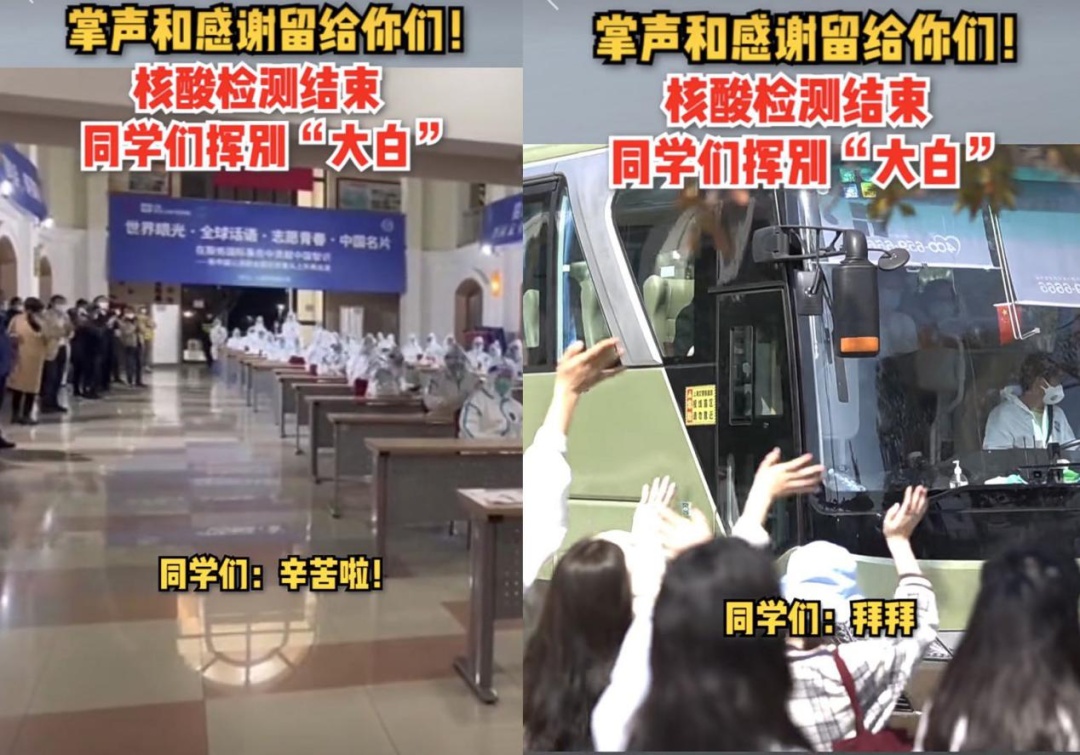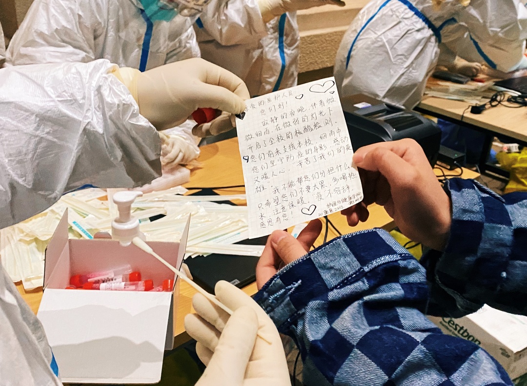 从3月13日启动校园闭环管理,到3月17日完成第二次全员核酸筛查,“大白”成了全校师生心中最亲切也是最可爱的人。不论白天还是黑夜,他们听从使命的召唤、随时“出征”;他们不畏艰险冲在防疫一线;他们无私奉献力保全民平安。谢谢“大白”!因为有你,所以心安。