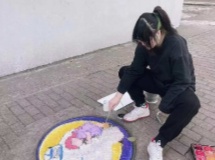 设计学院三位大一学生张洁、李金香、周徐表示,在这次战疫中,一群群可爱的“大白”最让大家感动,他们用坚定的信念保护着我们的城市和校园,于是决定将他们画在校园中,让“大白”的温暖在校园中传播。