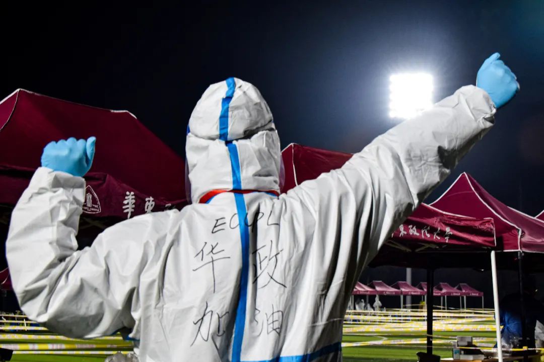 在这场抗疫战斗中,许许多多华政人选择走上抗疫一线,他们带着坚韧、奋进的华政精神化身“大白”、冲锋在前,以无畏的勇气和必胜的信念,汇聚成一道坚实的防线守护着华政园。