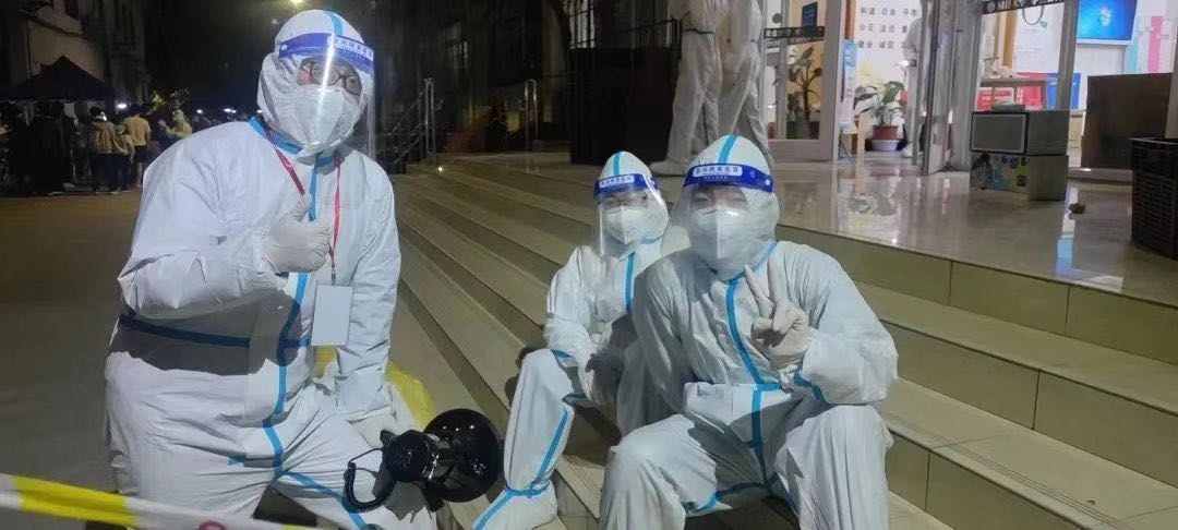 他们,是核酸检测中负责维持秩序的“大白”