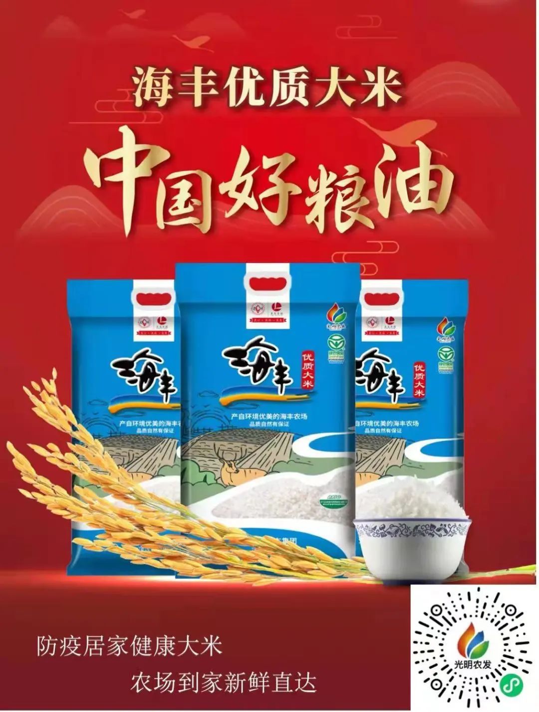 海丰优质大米基地好、品种纯、科技种植、保鲜仓储、高标准质量可追溯,成功获得2021年度“中国好粮油” 的殊荣,成为上海首个获得该荣誉的粮油产品。