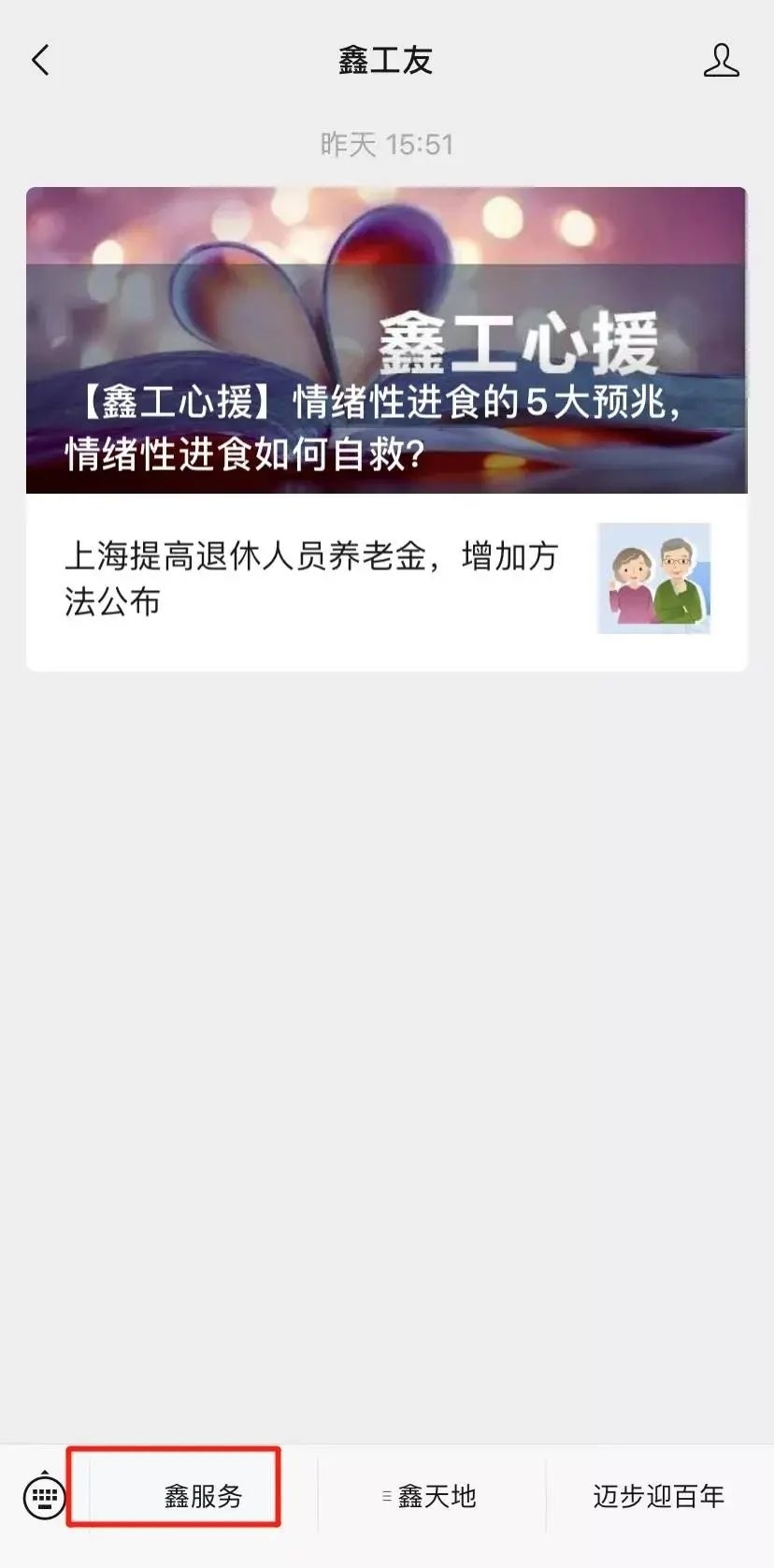 1、关注微信公众号“鑫工友”。