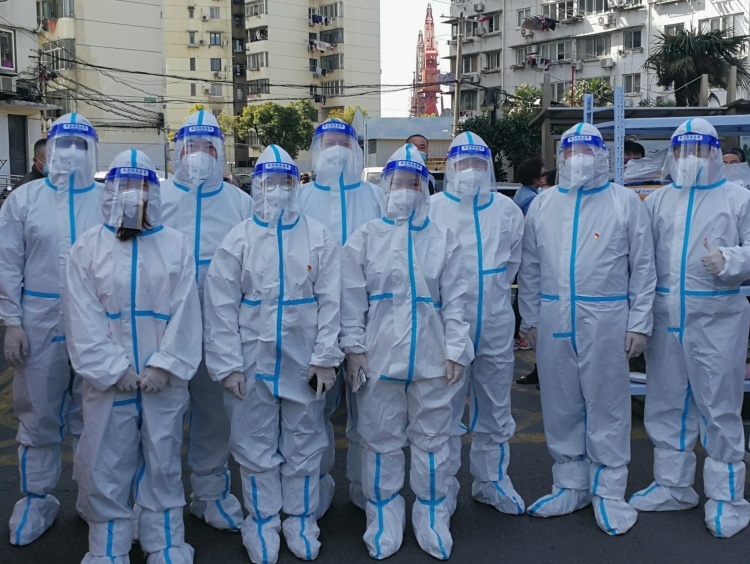当接到沪东社区联系人需要紧急增援的电话后,分院党支部书记汪其山的一句“我先上”带动了所有突击队员的士气。“逆行者”立即到岗,有序开展人员指挥工作。抗疫期间,上海的天气变幻不定,志愿者们在核酸检测现场,穿着密闭的防护服持续工作近7个小时,协助采集核酸样本2600余例,没有丝毫退缩。
