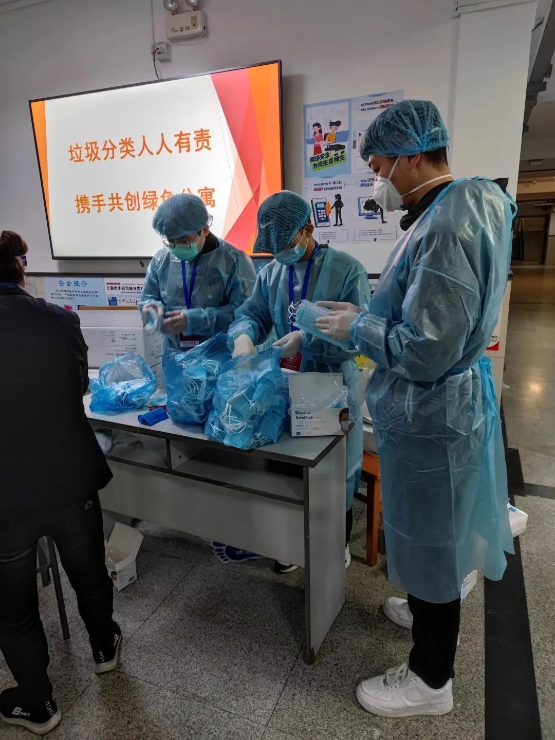 早饭、午饭和晚饭,都是志愿者一趟趟拎上楼的;晚上的核酸采样,志愿者们早早到场,帮忙搬运物资,随后通知大家下楼,还维持现场秩序……尽管闭环管理来得“猝不及防”,但同学们的付出,让一切变得井然有序。