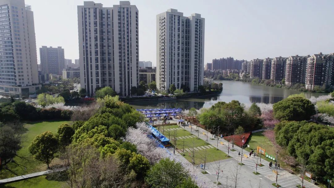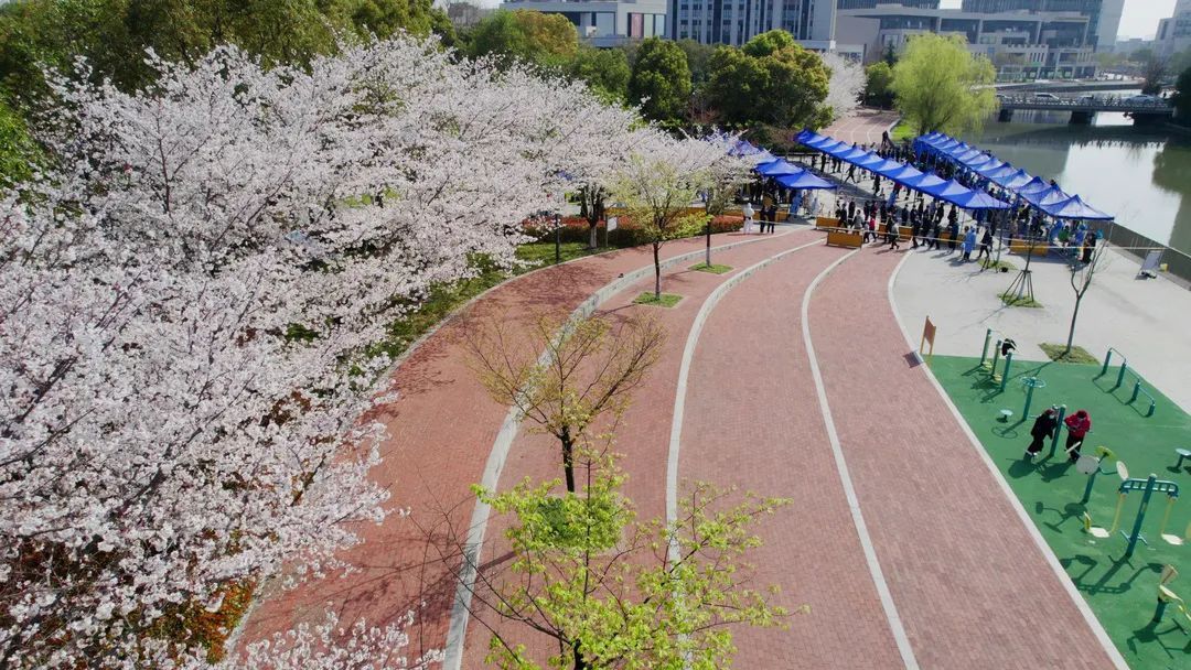 如今,这里繁花盛开,满园春色,园内的200株日本早樱已经绽放枝头,海棠花姹紫嫣红,河边垂柳吐露嫩黄色的新芽,随着春风摇曳生姿。