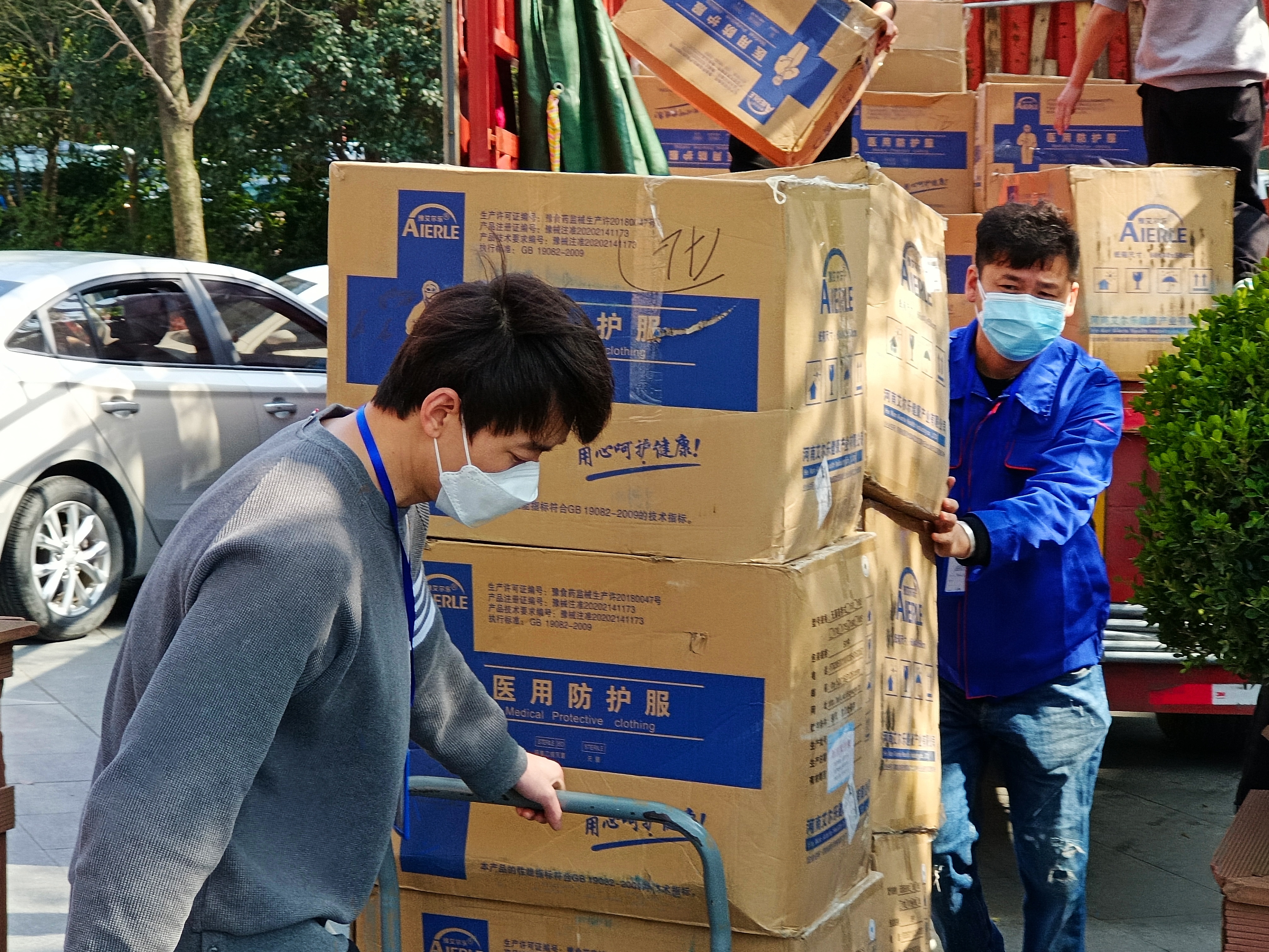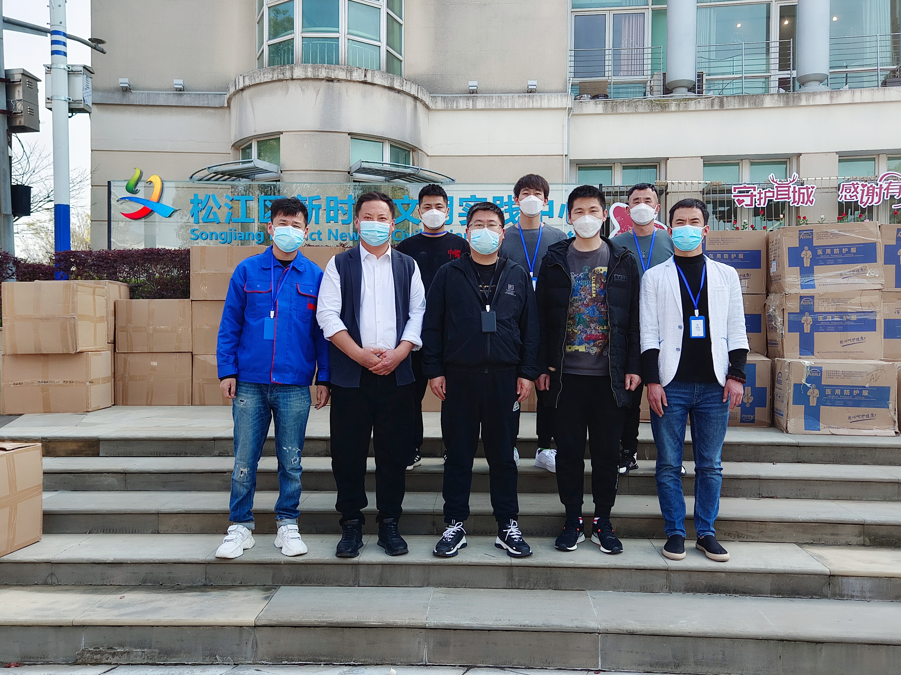 3月23日下午2时许,1500套医用防护服及15万枚口罩运抵松江区新时代文明实践中心,这批爱心物资由超越新鑫文化传媒(上海)有限公司及上海清新正快餐有限公司两家松江企业捐赠。很快,物资被各街镇的防疫志愿者代表到场领取后送往防疫一线。