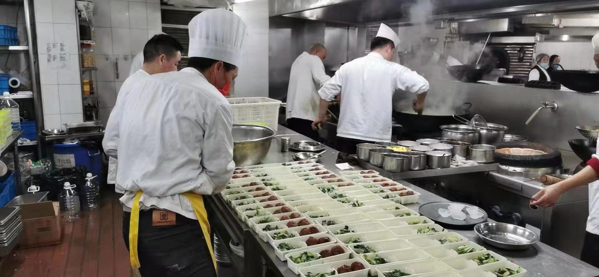 据了解,目前他们的13家门店都已经开通这项业务,门店订货满3份,金额100元左右,距离在4公里以内免费送货。而平时只有套餐上架的美团、饿了么等平台,也专门上架了半成品,部分门店还新开设了团购小程序,方便小区居民采购。同时,记者了解到,原本的外卖套餐也没有停止供应,给不便外出的居民能有更多的选择。不仅如此,为积极参与抗疫工作,和记小菜多家门店还积极落实周边街道下达的订餐任务,为抗疫志愿者提供外卖盒饭。