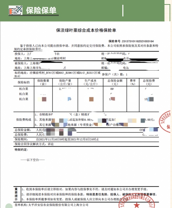 2021年10月12日,神农口袋web端的保险版块正式上线,选取了闵行区和青浦区的5家合作社作为试点。5家合作社在神农口袋端成功实现了蔬菜保险的在线投保,标志着神农口袋成功与安信农业保险的业务系统打通。2022年3月16日,神农口袋线上农业保险正式开通,切实推动了上海市农业农村金融的可持续性发展,助力农业保险数字化。