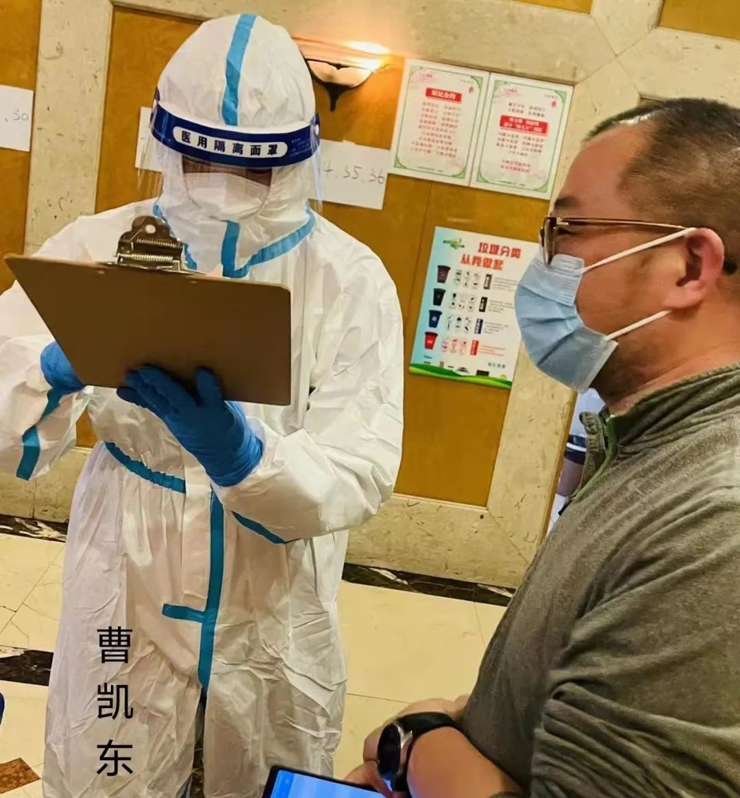 封闭小区隔离情况发生变化时,曹凯东爬楼将隔离通知书送到每户居民的手中,并耐心为居民一一解惑。