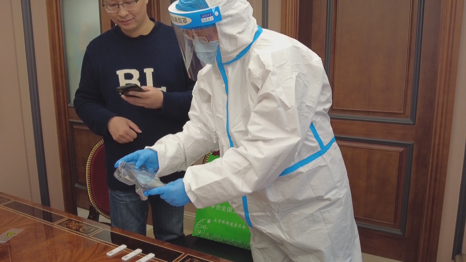 记者看到,每一户做完抗原检测的居民,社工或志愿者都会作相应确认,一旦发现结果显示为阳性,将会同相关部门对居民再进行一次核酸检查。