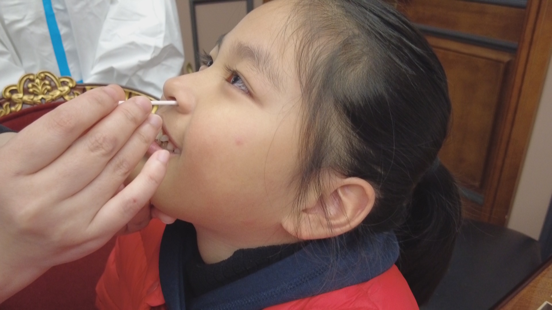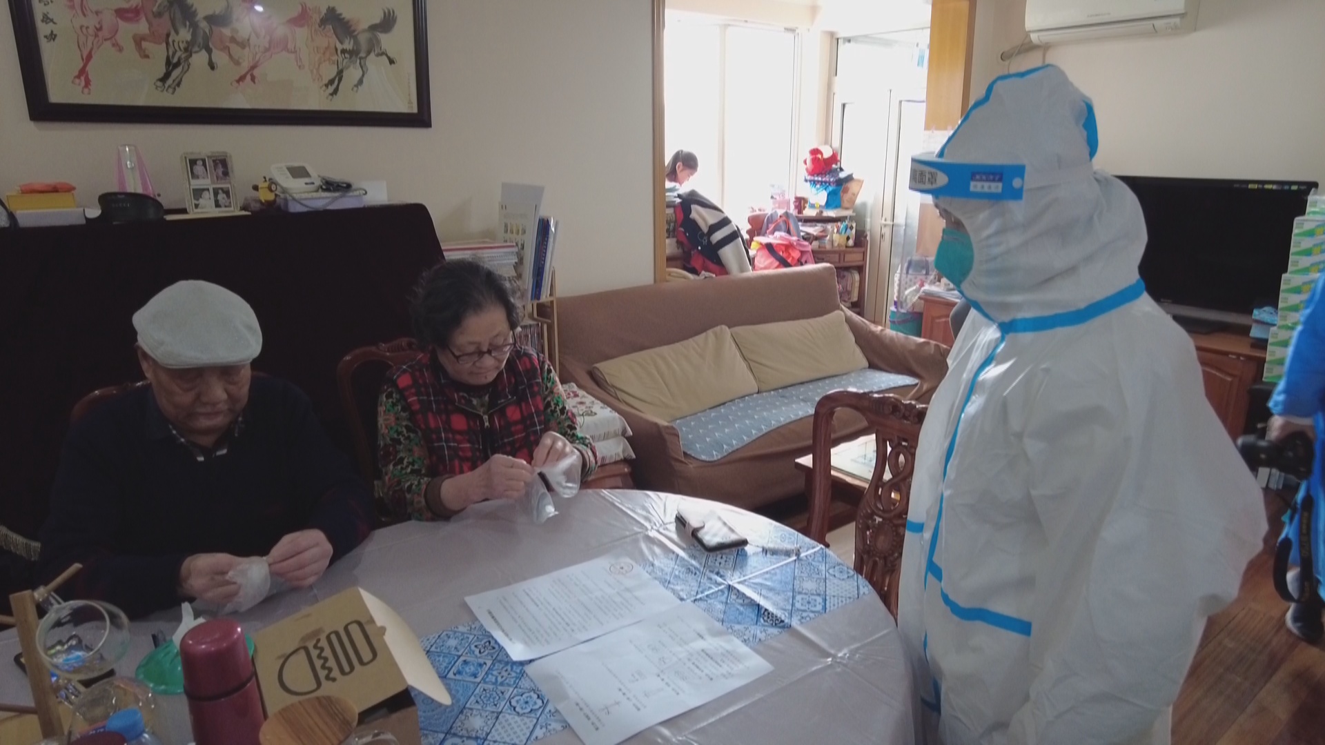 而在另一户乐女士家中,由于之前他们已经反复熟悉了自测教程,根据视频中的操作,很快就完成了两位大人的采样。随后乐女士为自己8岁的女儿完成了自测。三人的结果也都显示为阴性。社工也会对所有居民的检测结果进行拍照留存。乐女士说,他们一家之前已经做过好几轮核酸检测,今天测试后感到更加放心了。