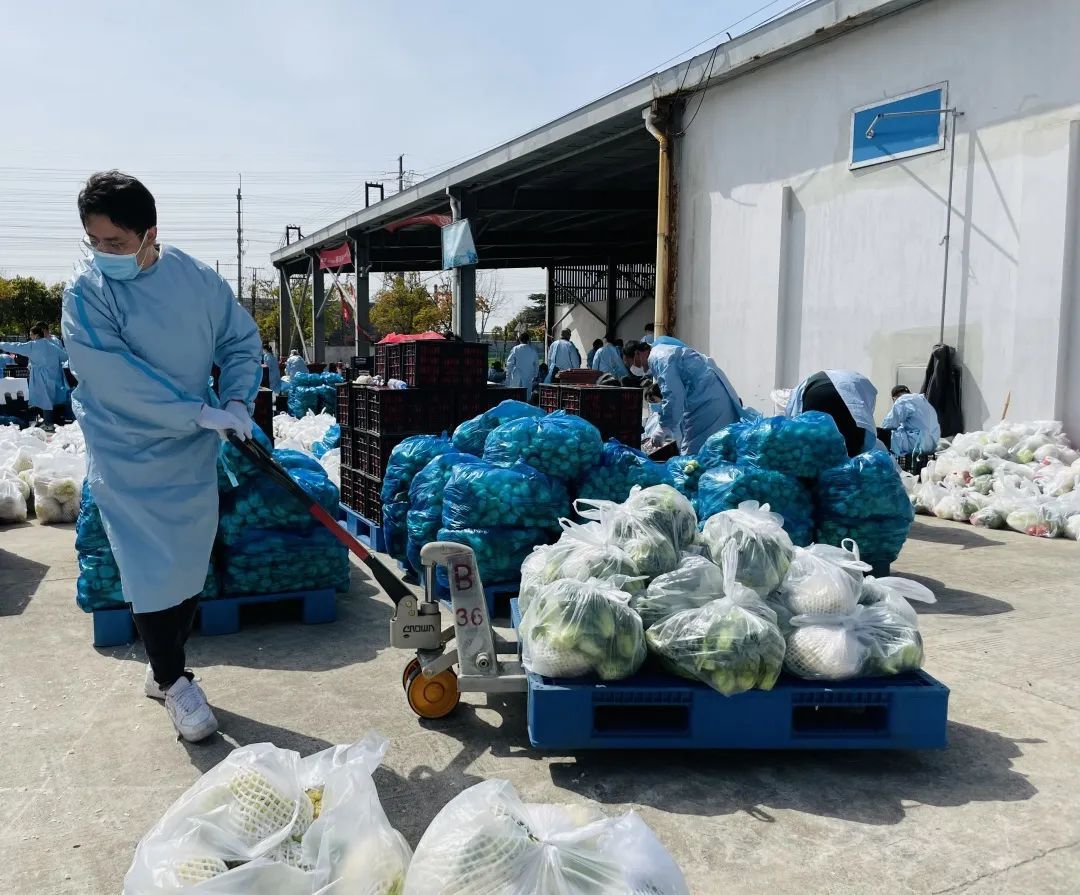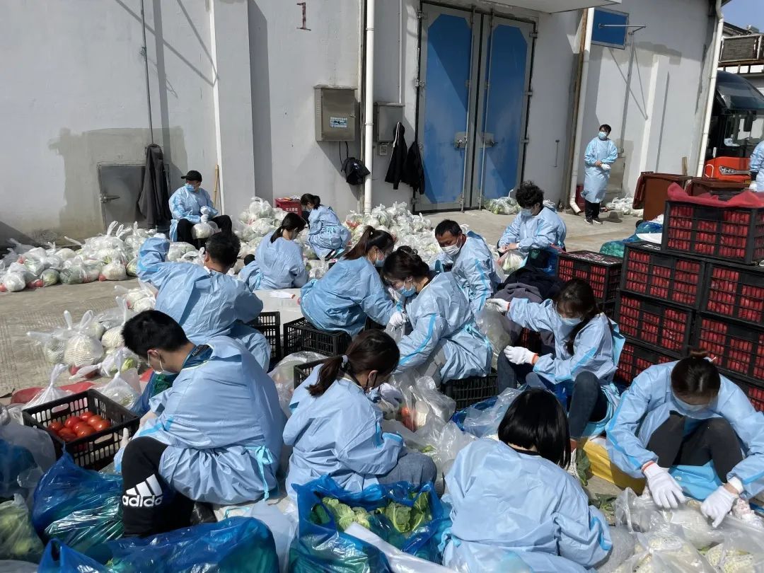 短短半小时内,国资系统火速集结了国资委机关、区属企业及西上海集团近1300多名志愿者,迅速驰援新嘉集团的蔬菜分装。