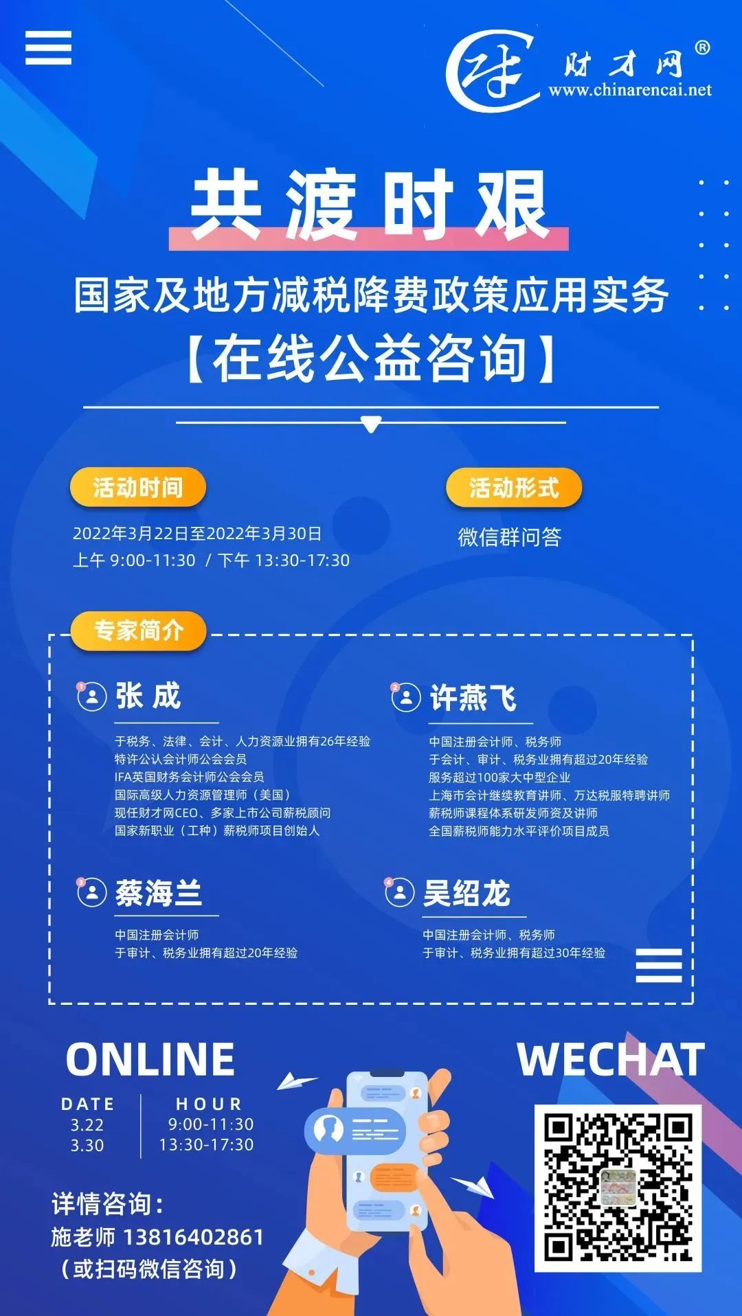 上海财才网信息科技有限公司提供国家及地方减税降费政策应用实务在线公益咨询,帮助企业了解政策、用好政策。