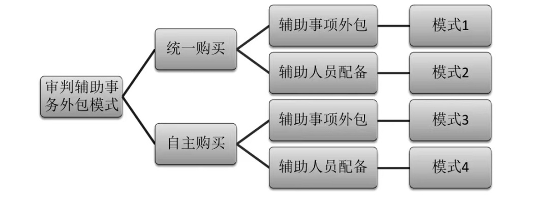 第二,审判辅助事务社会化工作模式的引入,从购买社会服务的主体看,可选择“统一购买”和“自主购买”两种方式;从购买社会服务的方式看,可选择以辅助事项外包和以辅助人员配备两种模式。笔者认为,在“统一购买”的模式下应当是以辅助事项外包为主要模式;在“自主购买”模式下,各层级法院本部应当以辅助事项外包为主要模式,各层级法院派出法庭应当以辅助人员配备为主要模式。
