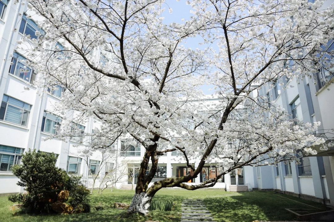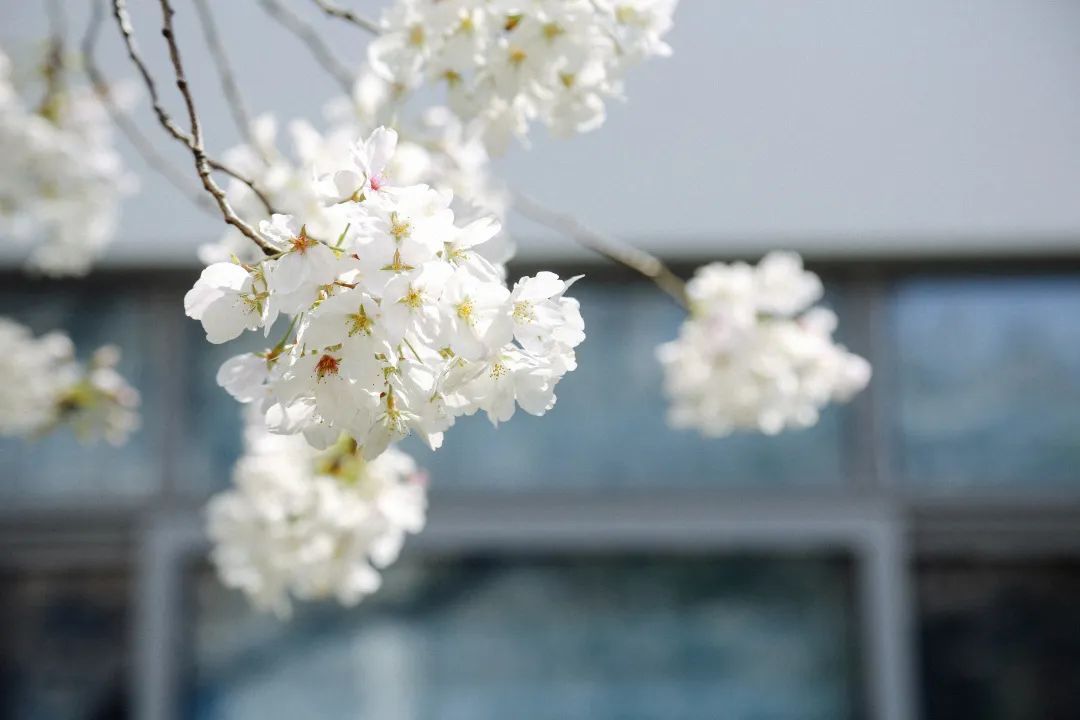 学校里的樱花迎着寒风开得正好,
