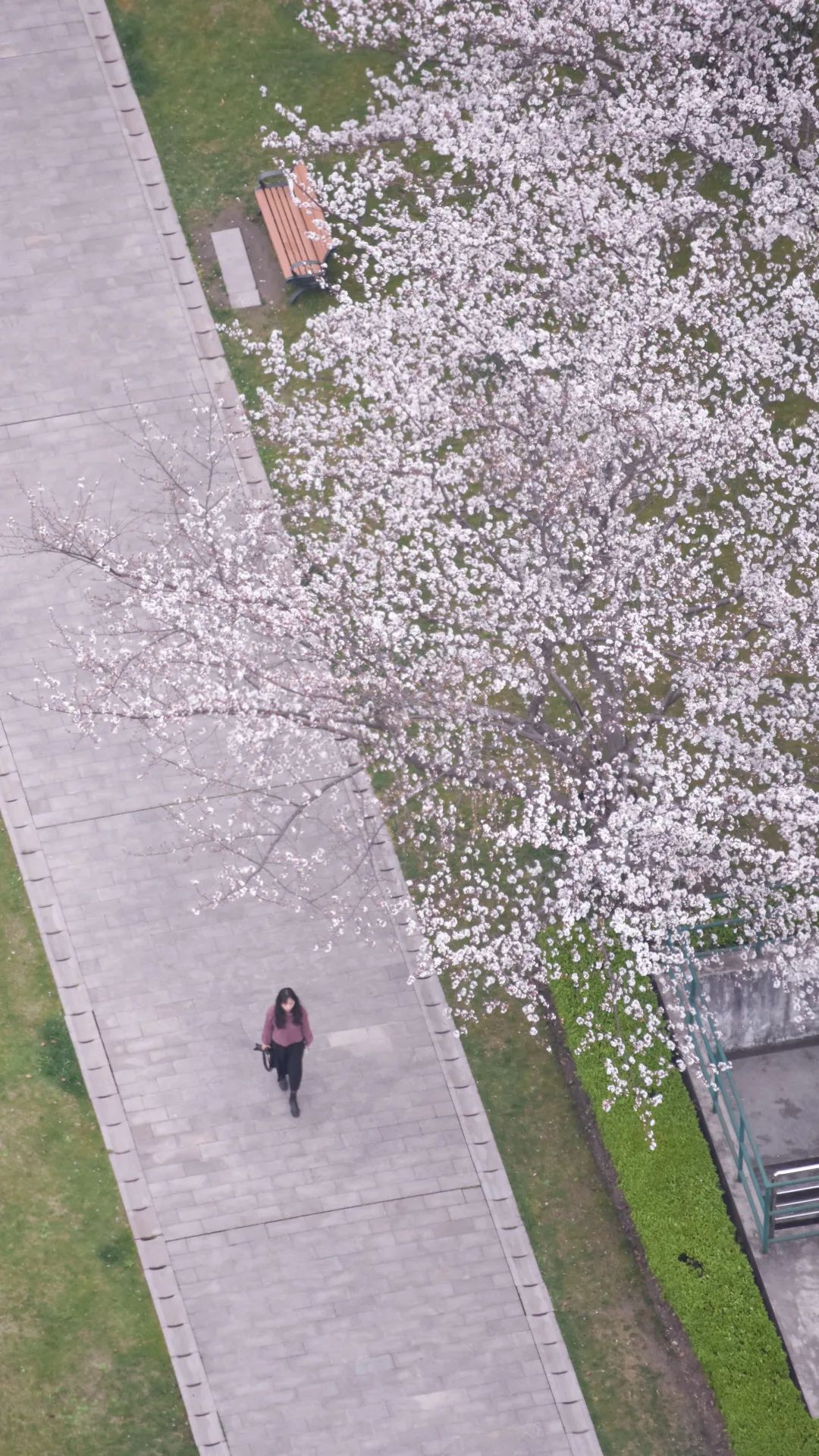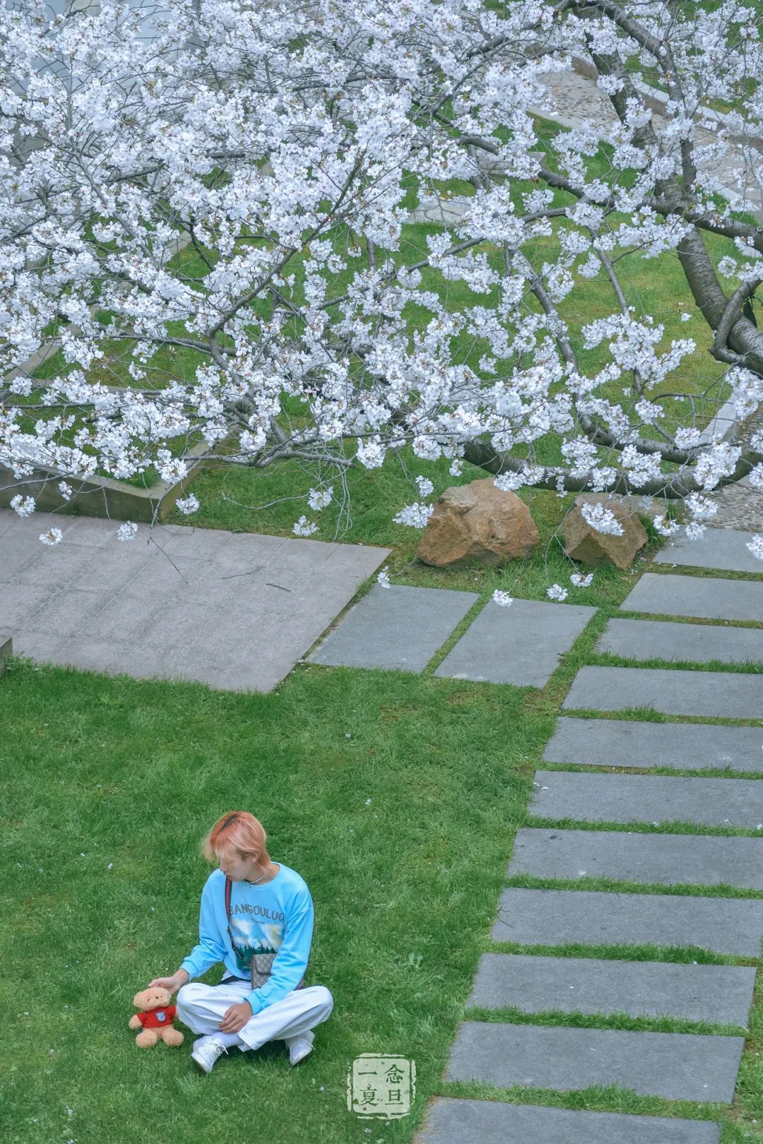 头顶是开得正盛的樱花,