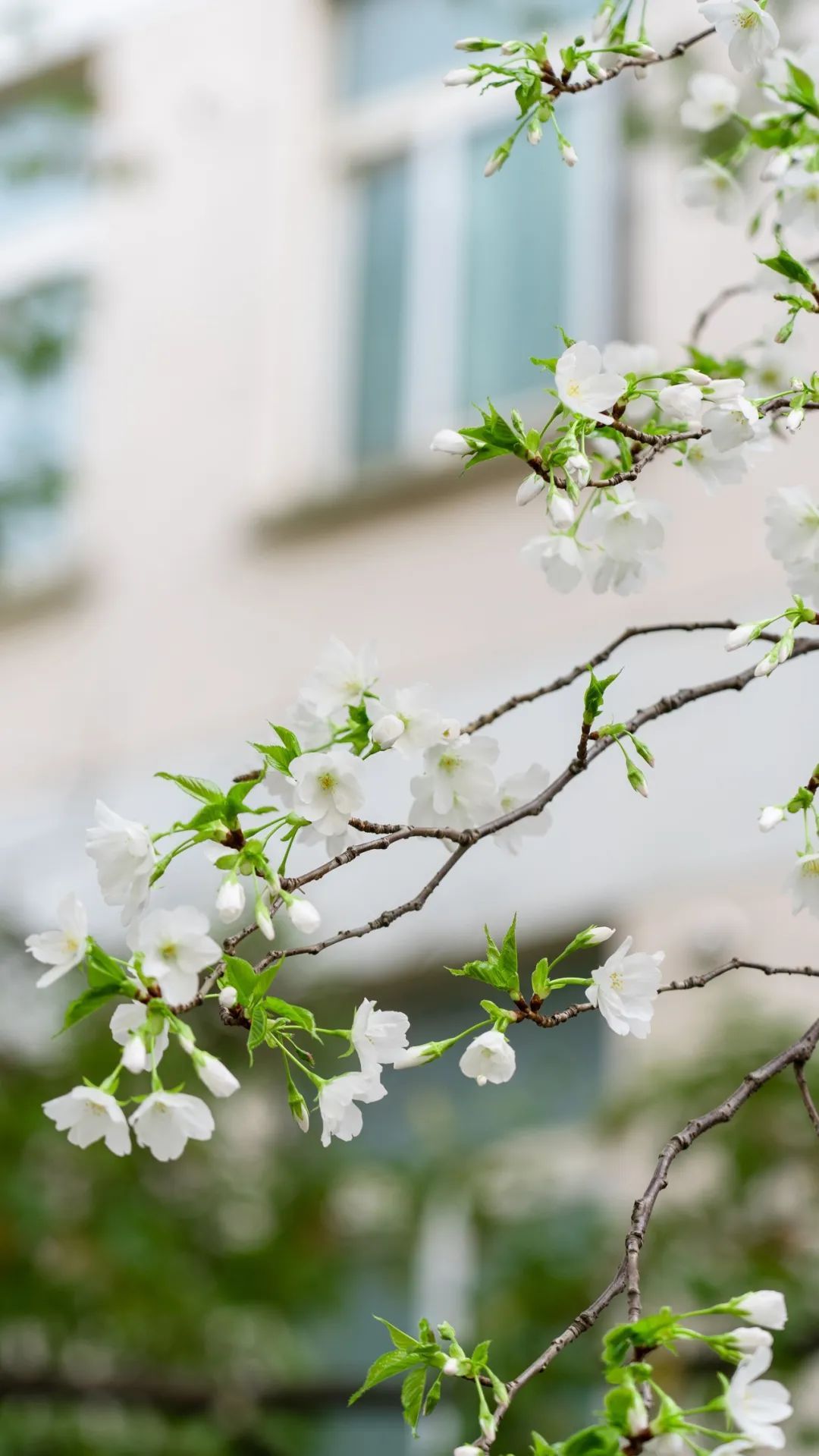 樱花和水雾一起攀上窗棂。