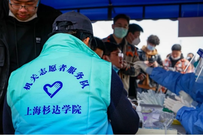 上海杉达学院机关志愿者服务队于2019年成立,由机关各职能部门教职工组成,不仅有40多年党龄的老党员,也有刚刚向党组织递交入党申请书的青年教职工。此次,机关志愿者一路协助全校师生的核酸检测服务。第一次任务是3月9日晚上9点到第二天凌晨2点,当晚气温骤降,志愿者们从头站到尾、坚守岗位。国际交流处徐文怡说:“作为一名刚交了入党申请书的年轻同志,这次真真实实地看到了机关党组织的各位前辈老师在志愿队伍中的辛勤付出。对我来说,这是一堂生动的党课,让我对党组织的力量有了更加深刻的认识。”