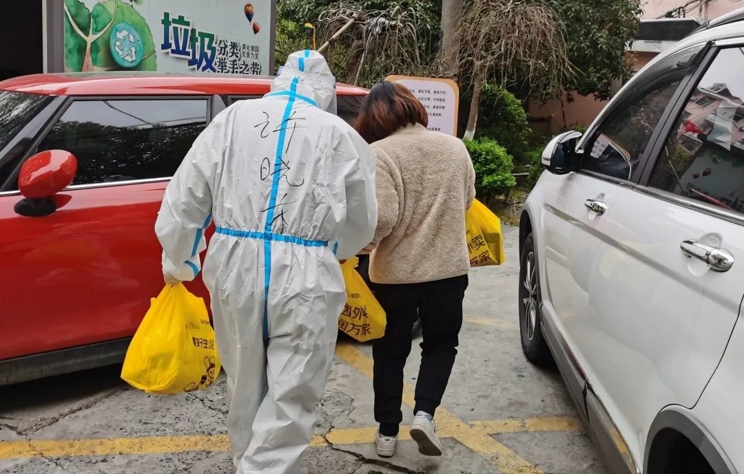 ▲志愿者帮居民配送物资