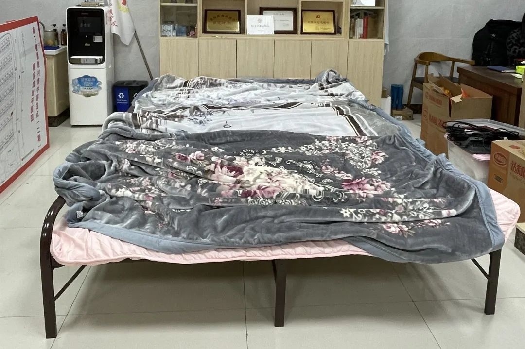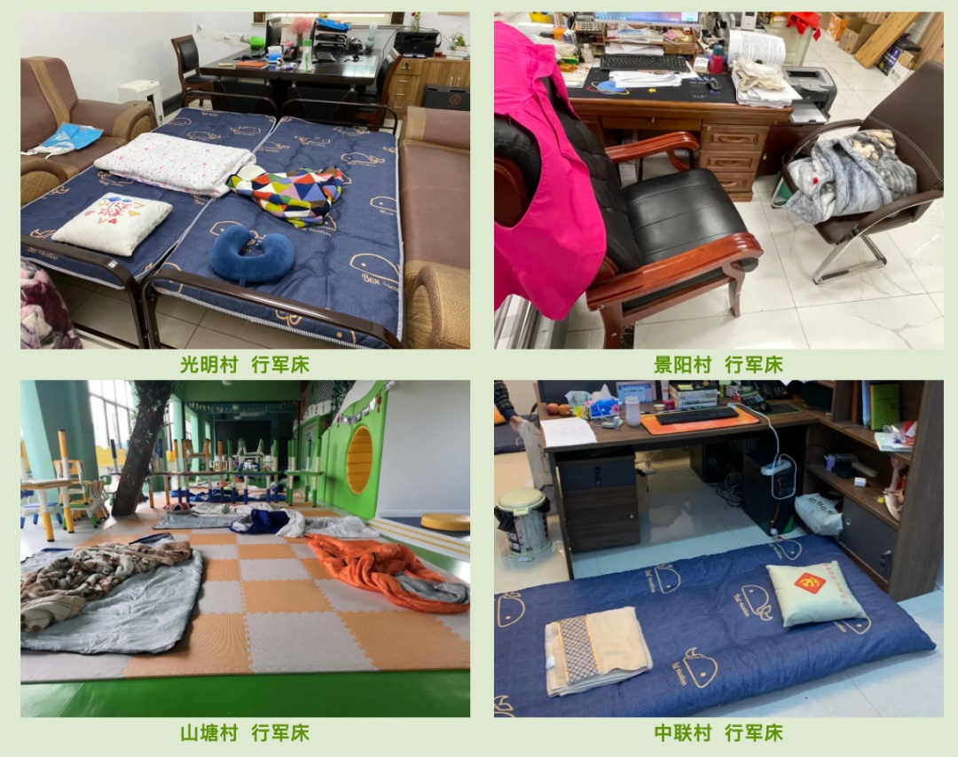 3月27日晚,在廊下镇友好村村委会的角落里支起了四个行军床。尽管床铺已就位,村委工作人员也早早回到了自己岗位上,但一直到28日中午,床铺上的被褥依旧整整齐齐,没有动过的痕迹。原来,从27日晚接到核酸筛查通知开始,工作人员便立刻投入到了紧锣密鼓的筹备工作中去,根本没有时间休息。