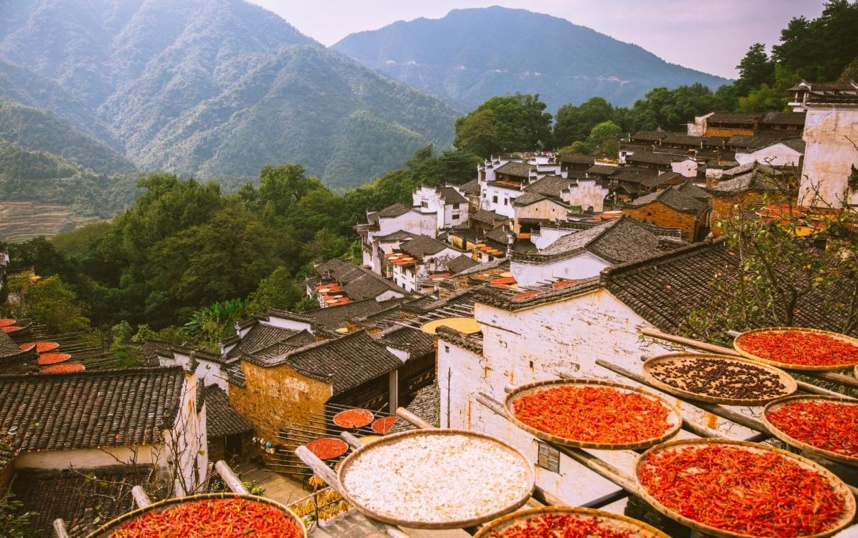 乡村更具有整体性,“景、物、人、事”共同构成了一幅幅诗意的田园画卷。乡村的山水林田湖草是一个生命共同体,因此,除了物质空间的营造、文化的视觉表达外,必须把生活方式的延续与历史建筑的保护看作同等重要,同时加强对物质、能量等生命要素的设计。比如在婺源篁岭,晒秋这种习俗与空间环境共同构成了特色的文化景观。