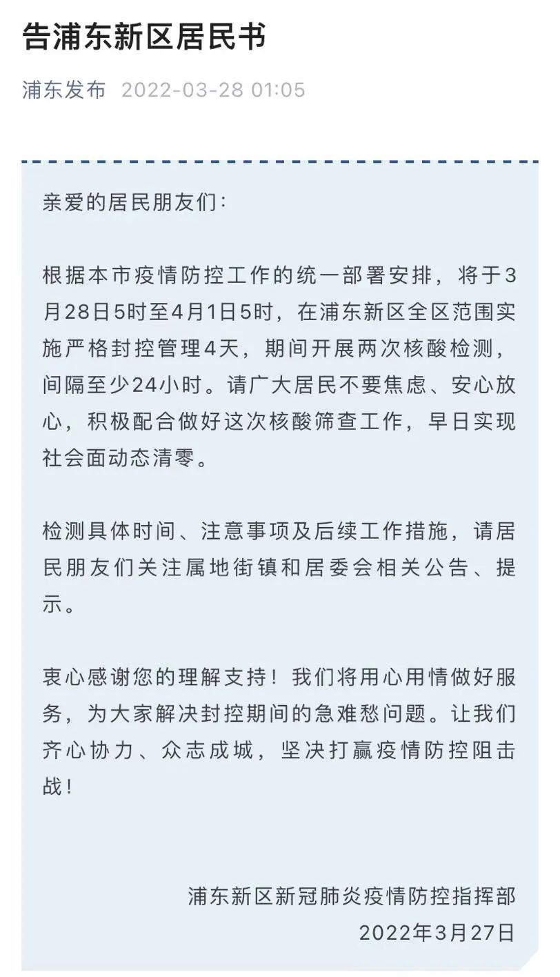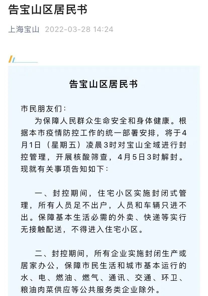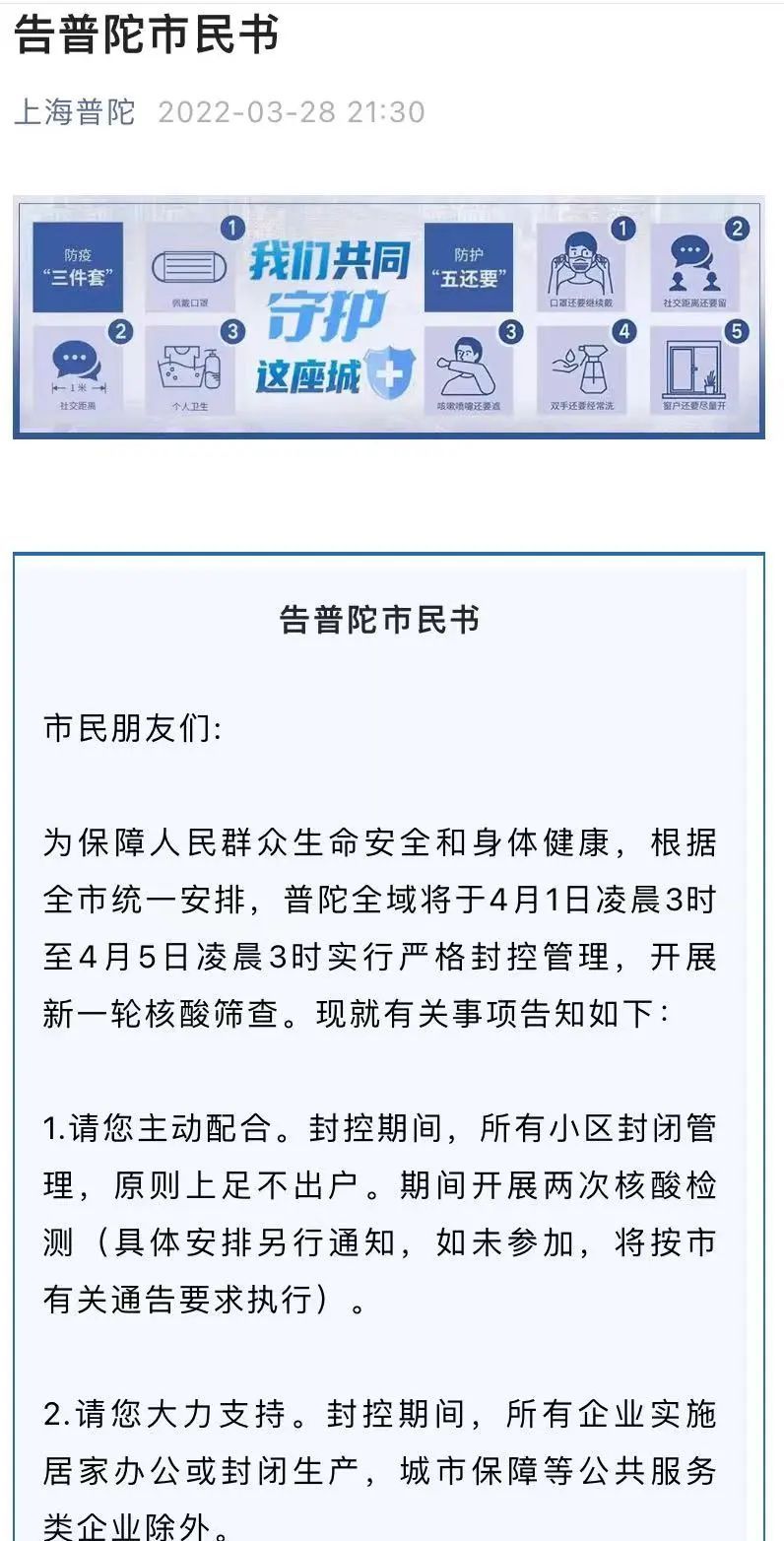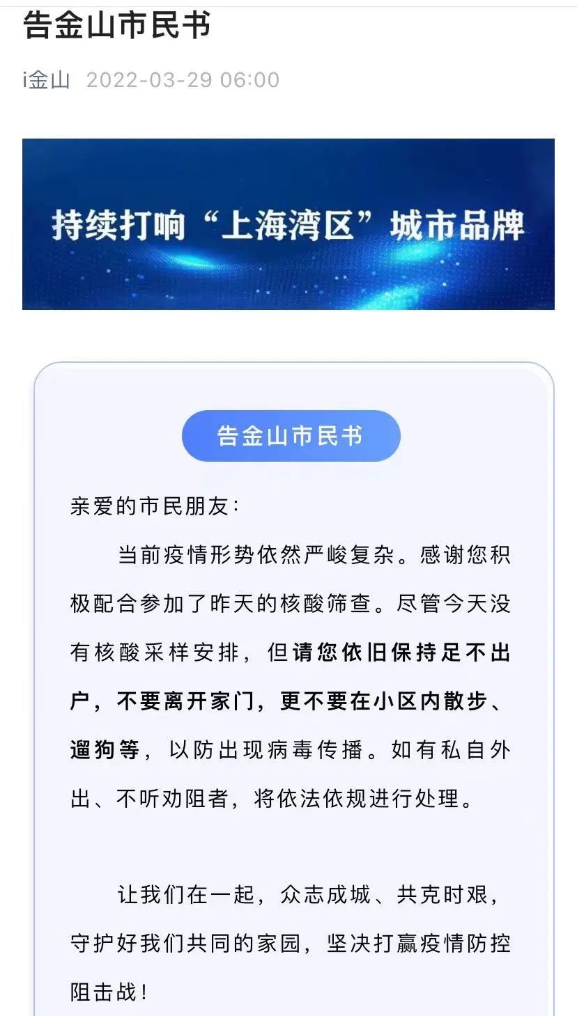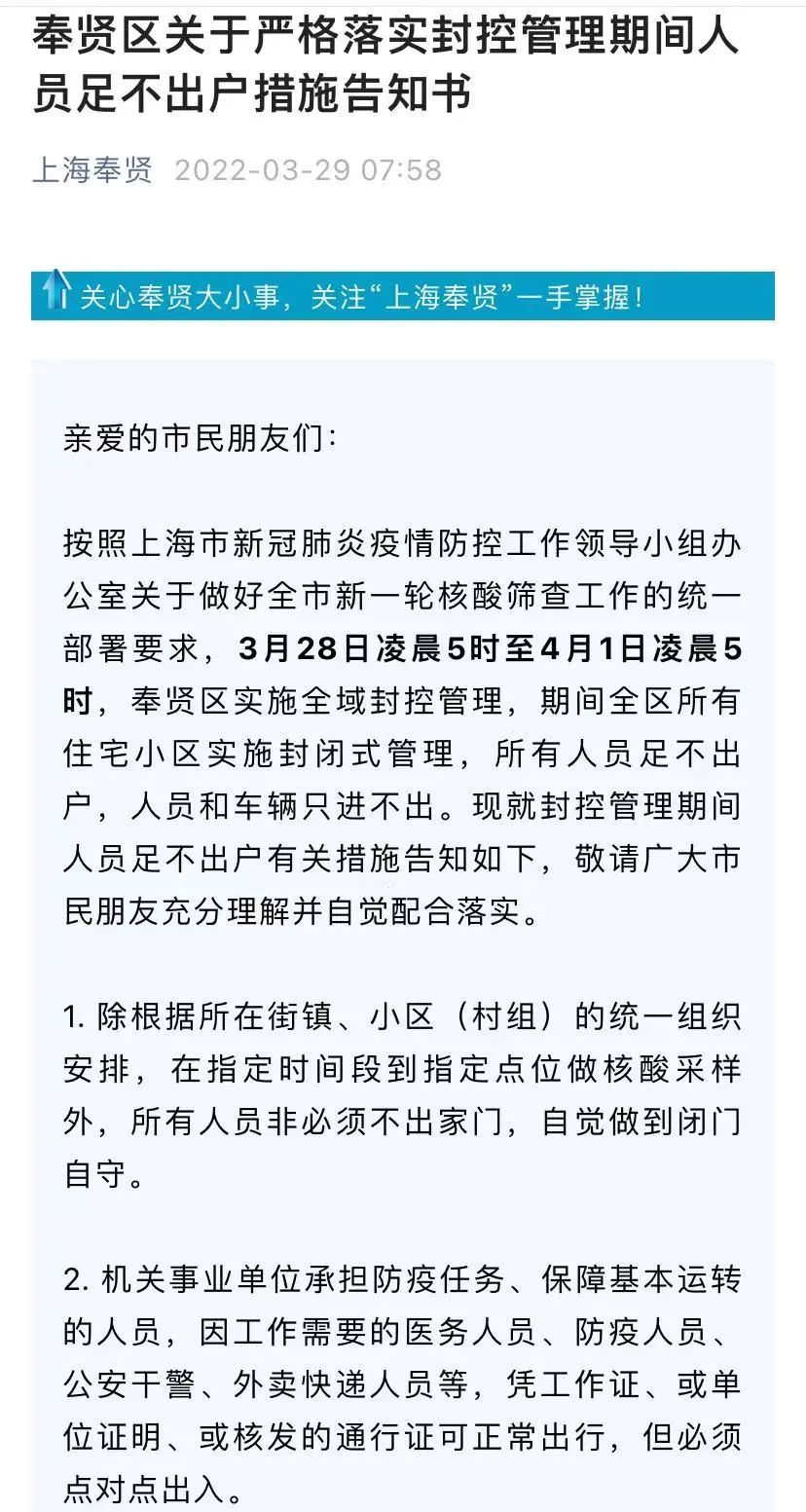 详情→奉贤区关于严格落实封控管理期间人员足不出户措施告知书