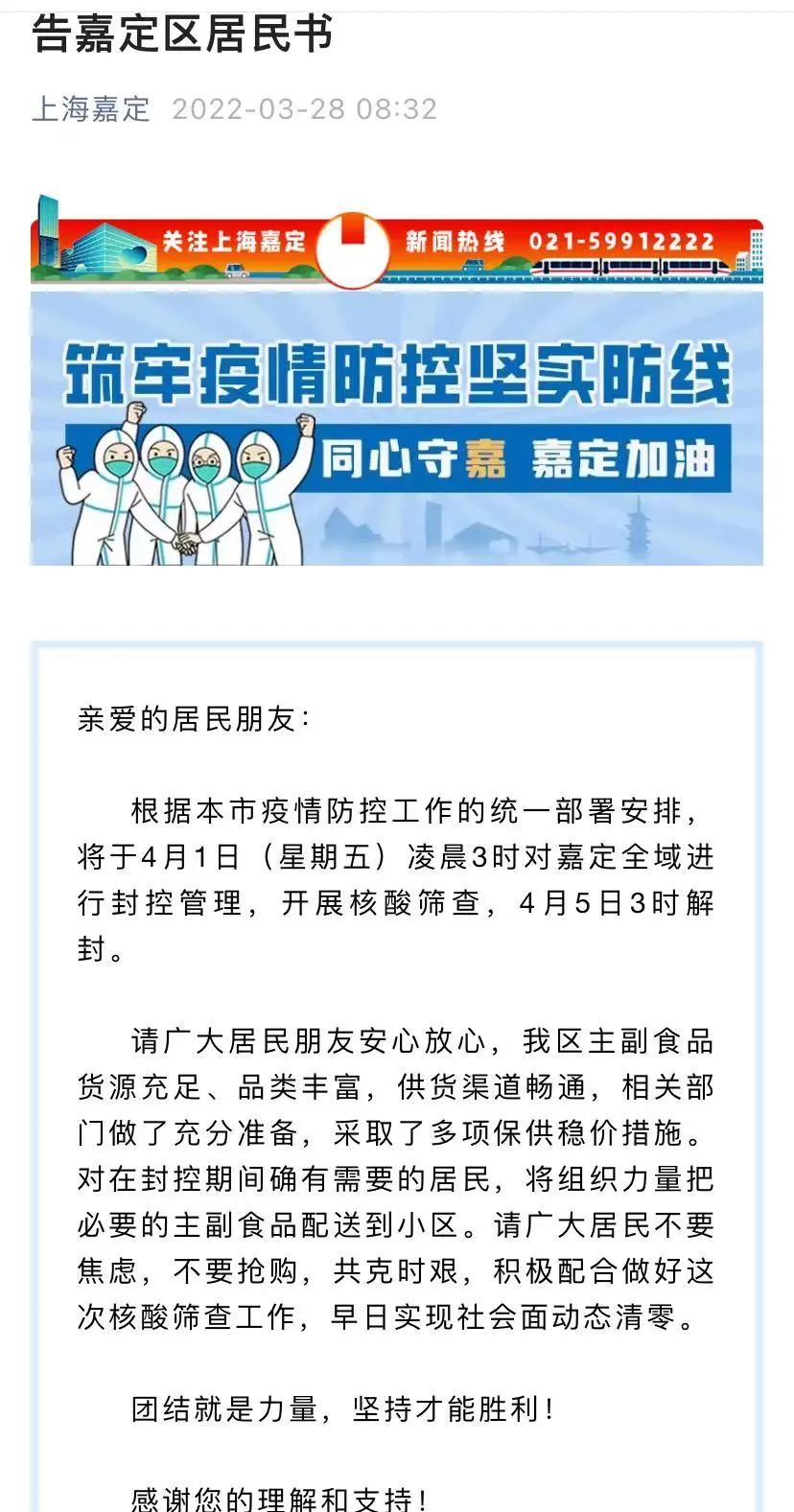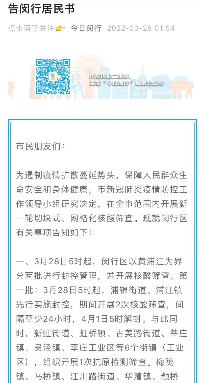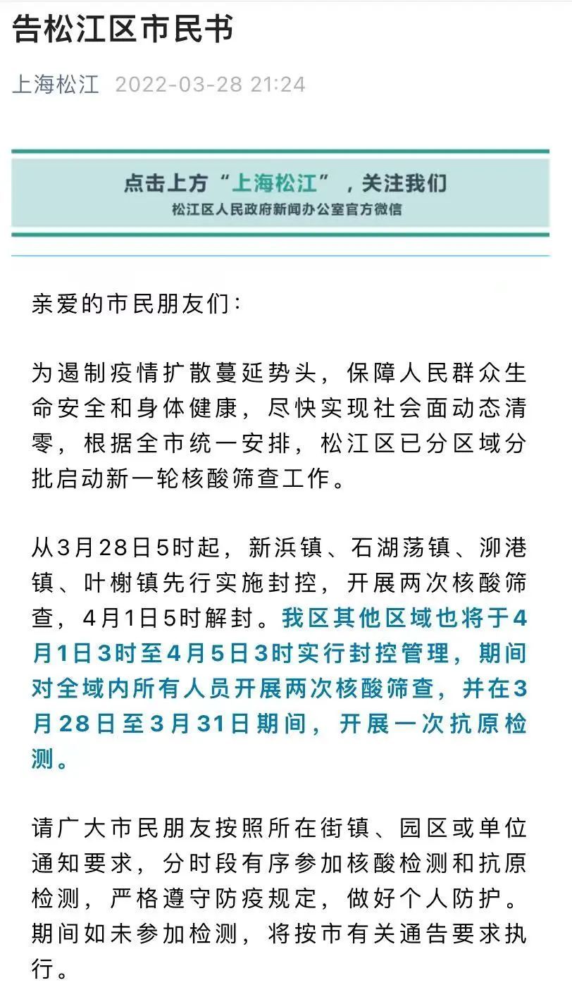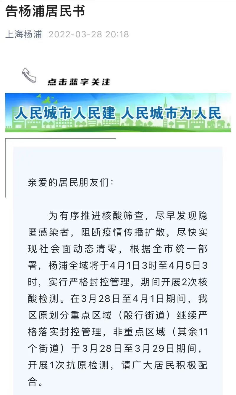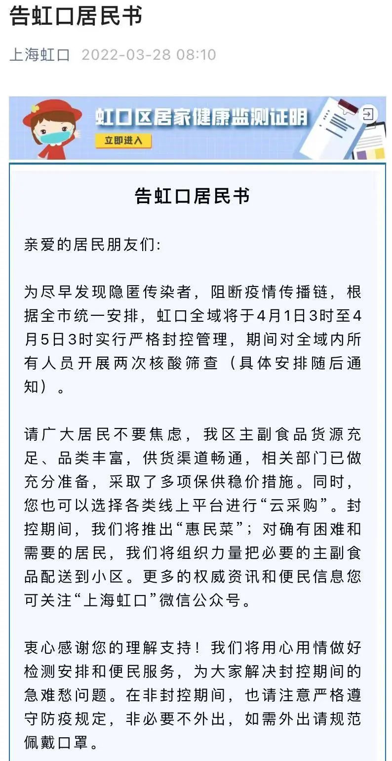 详情→奉贤区关于严格落实封控管理期间人员足不出户措施告知书