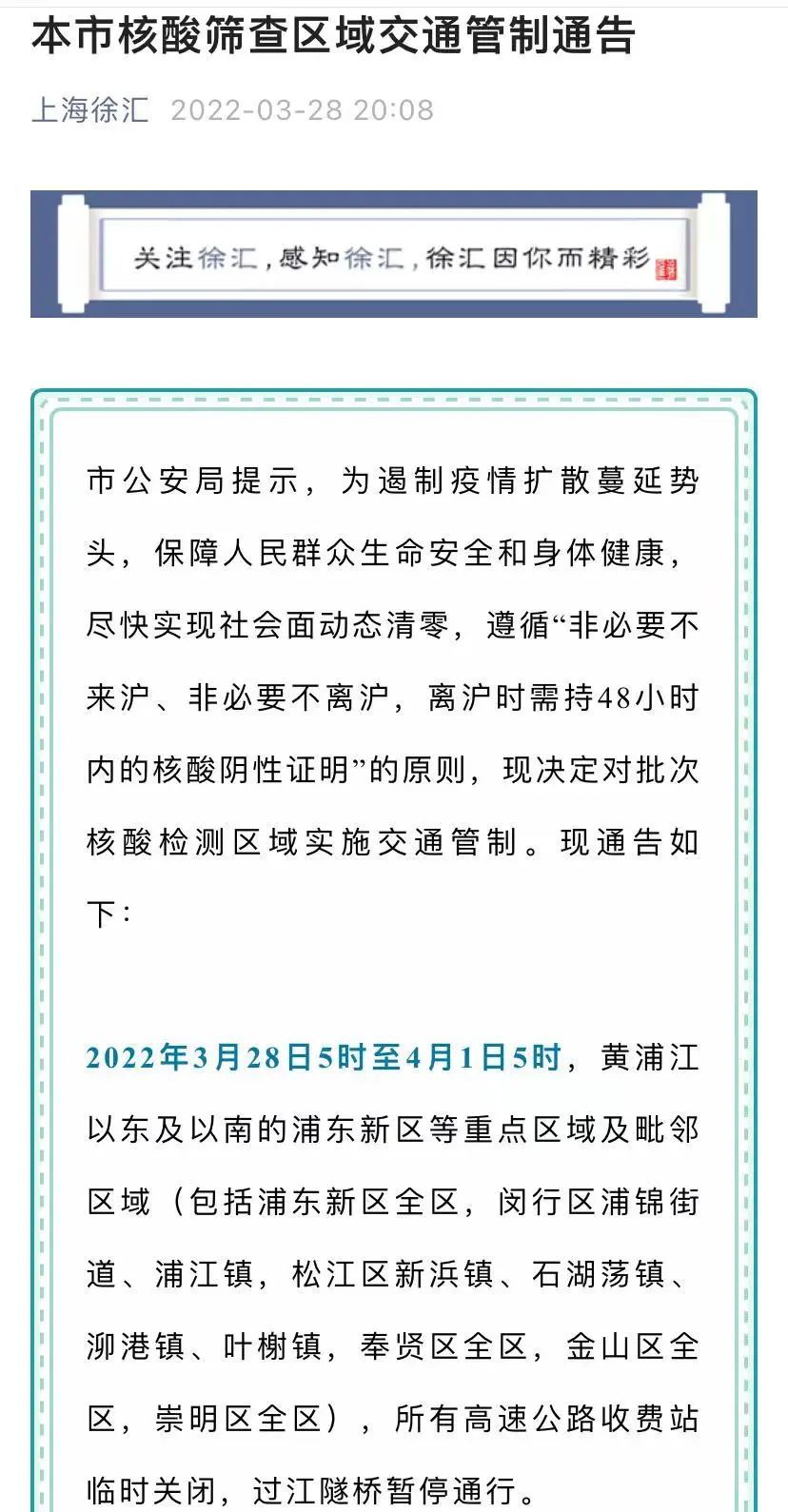 详情→核酸筛查区域交通管制通告