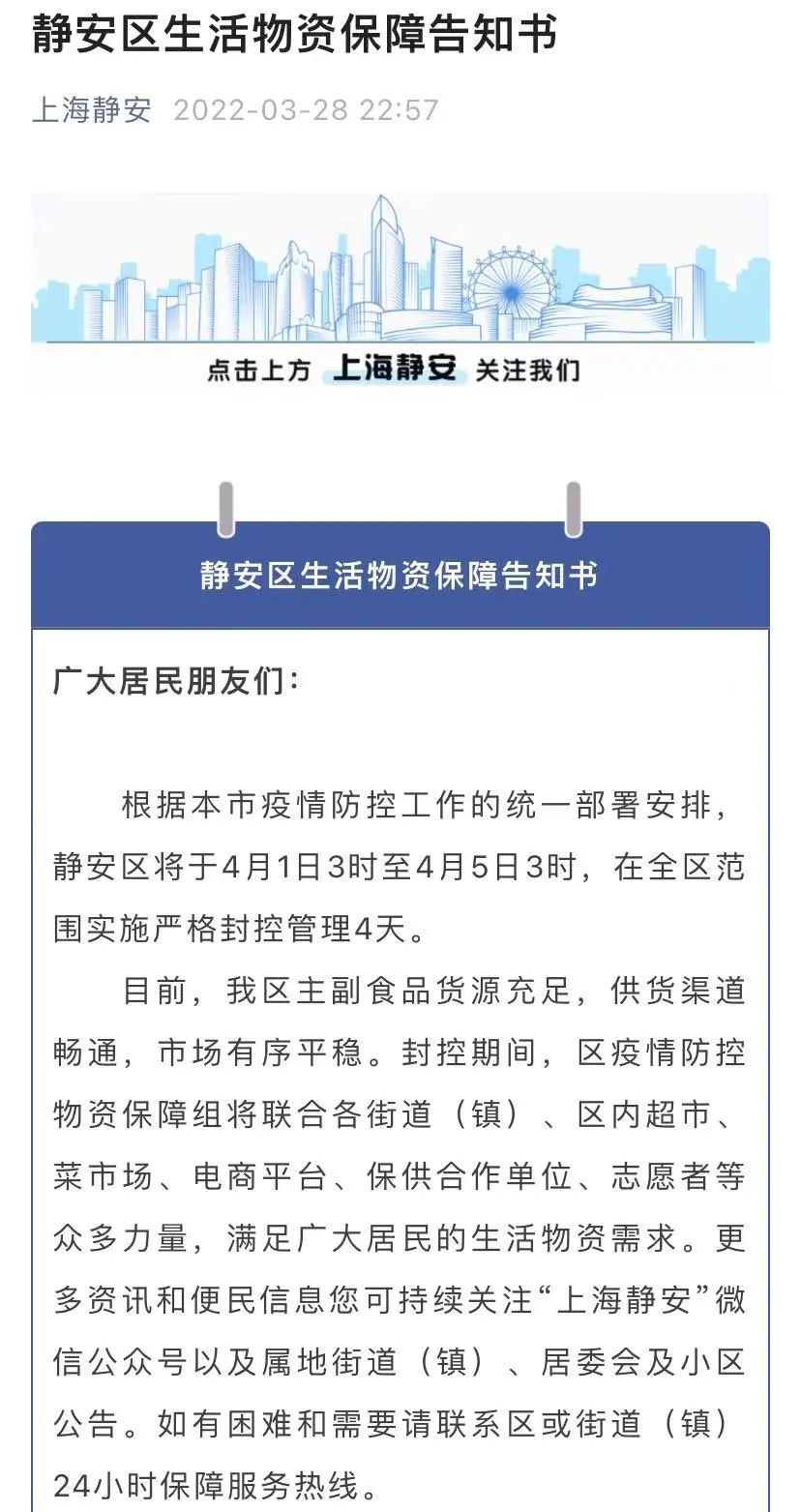详情→静安区生活物资保障告知书