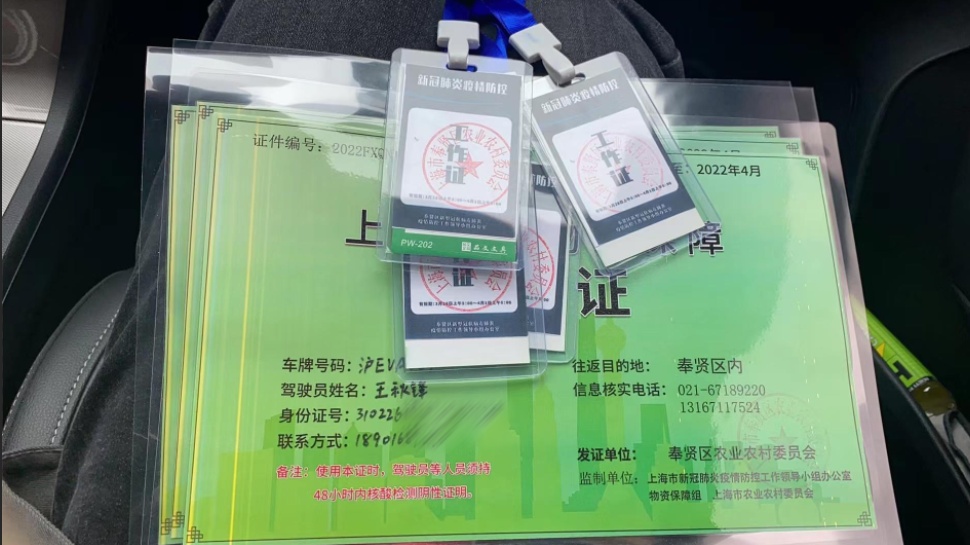 为遏制疫情扩散蔓延势头,尽快实现社会面动态清零,从昨日5时起,浦东、浦南及毗邻区域开始实行新一轮切块式、网格化核酸筛查工作。考虑到在此期间社区团购蔬菜需求肯定会大幅度上升,为此,奉贤区农业农村委紧急制作了车辆运输证和工作证,方便各个合作社运送蔬菜等农副产品。