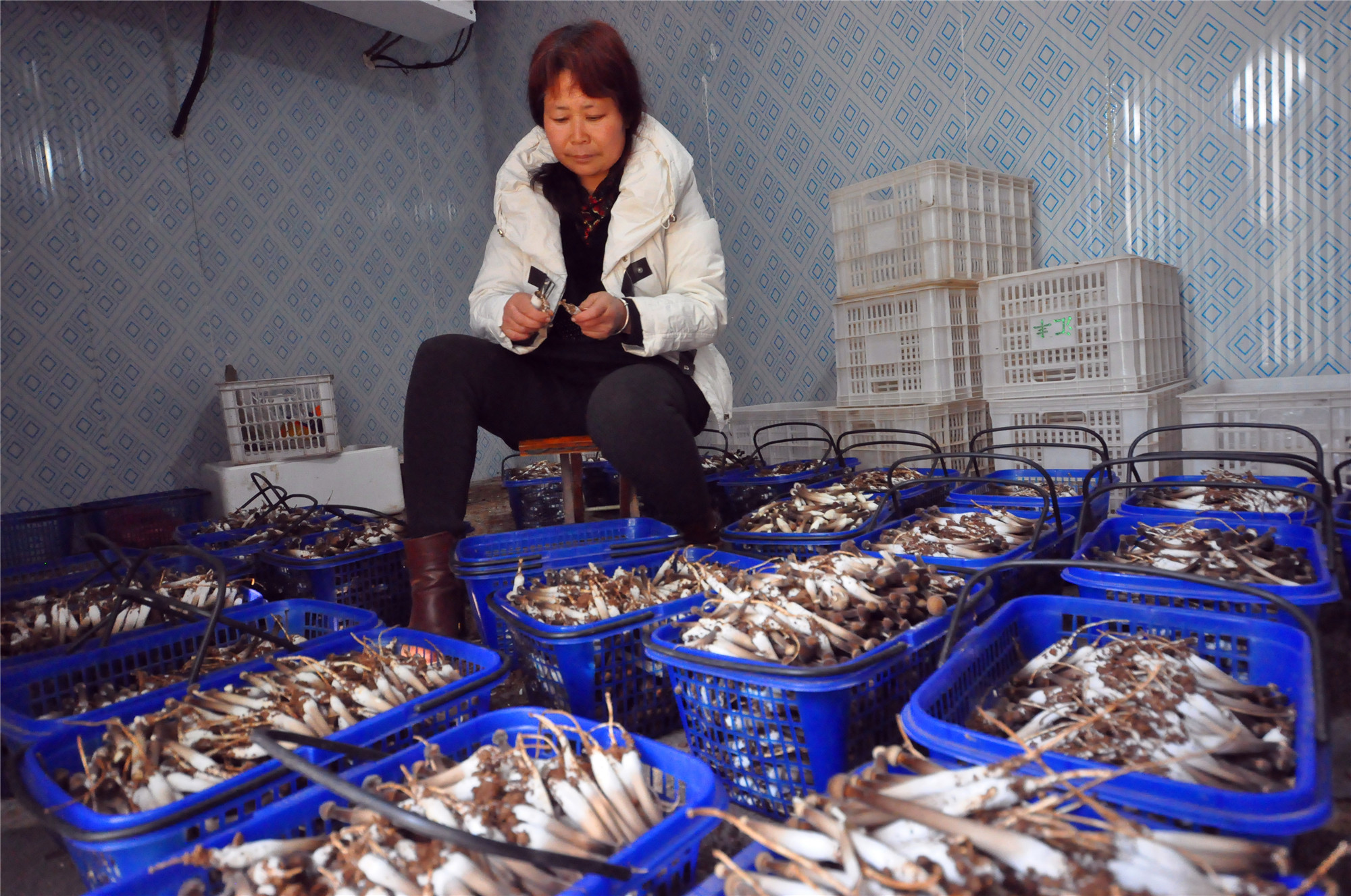 3月28日,南鲁山镇朱阿村村民收获蘑菇。